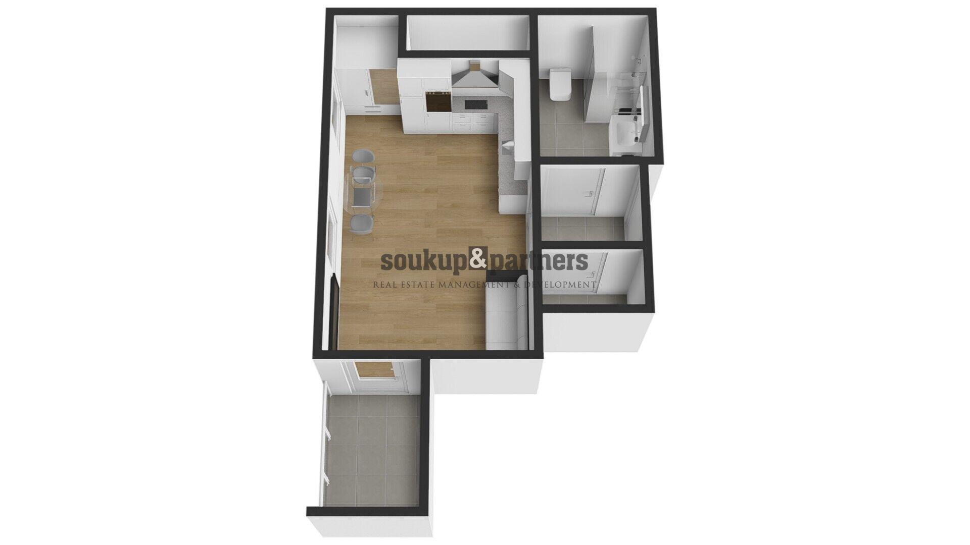 - Dispozice bytu: 1+kk