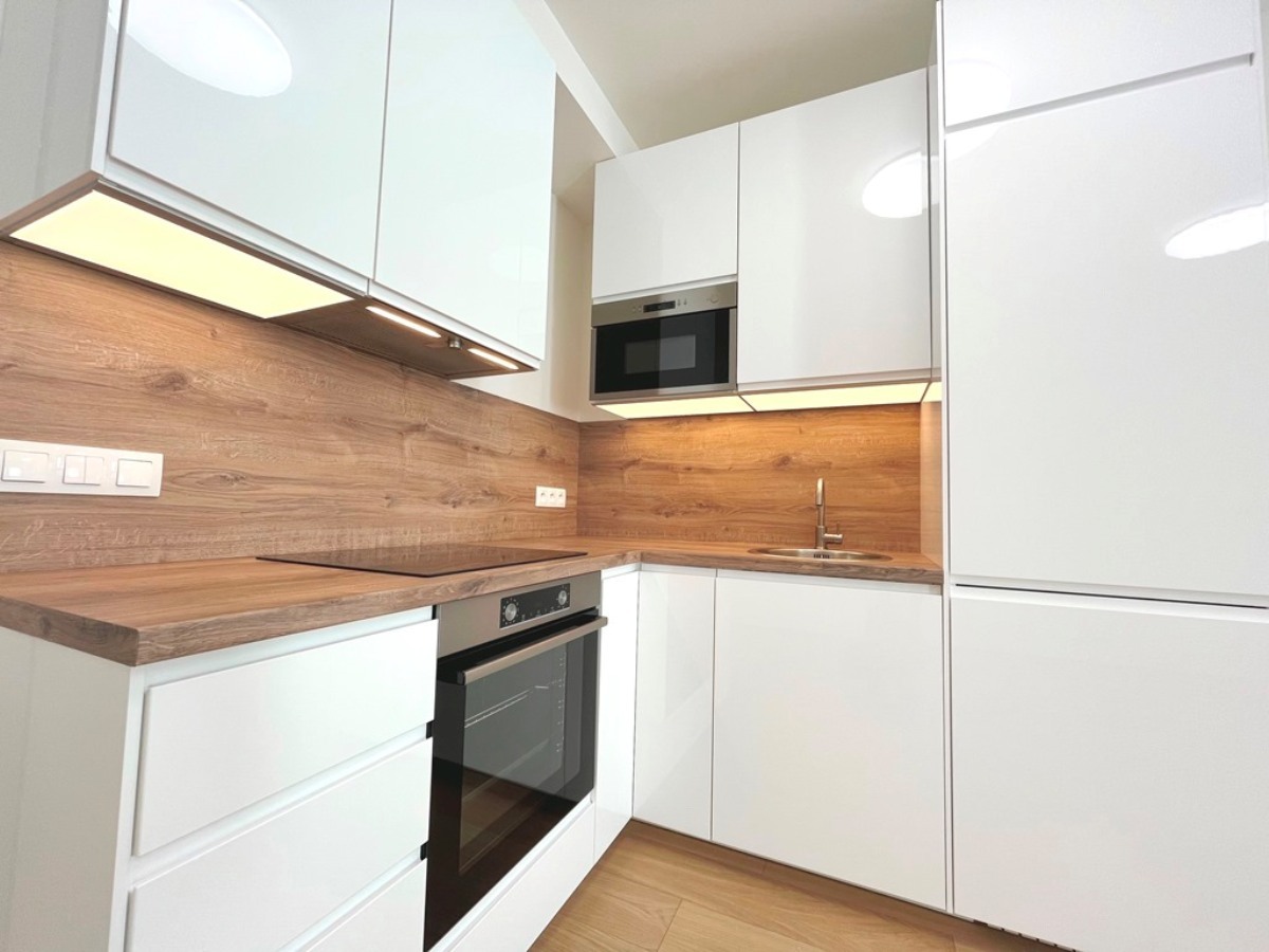 Nabízíme k pronájmu nezaříz. 1+kk 29,2m2 + Terasa 5m2 v 1NP novostavby v ul. Azzoniho. Dům se nachází přímo u Malešického lesa. Terasa je situovaná na jihozápad, okna zabezpečeny venkovní el. žaluziemi. Vybavení moderní kuch. linka s varnou deskou, horkovzdušnou troubou, mikrovlnkou, lednicí, mrazákem. Vinylové podlahy. V předsíni prostorná vestavěná skříň. (Nábytek a vybavení lze ponechat po dohodě se současným nájemcem). Součástí pronájmu je sklep o velikosti 2m2. Nájem 17.000,-Kč + služby 3.000,-Kč + elektřina, kauce 20tis. + provize 1 nájem + 21%DPH. K nastěhování od února.
