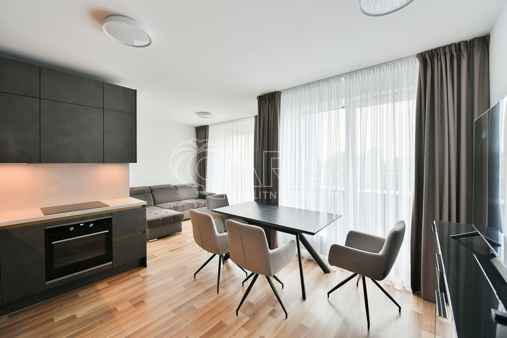 Exkluzivní nabídka pronájmu bytu 2+kk (58m2) s balkonem a dvěma garážovými stání v novostavbě z roku 2024.