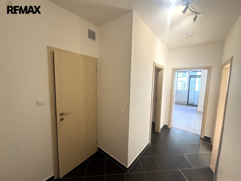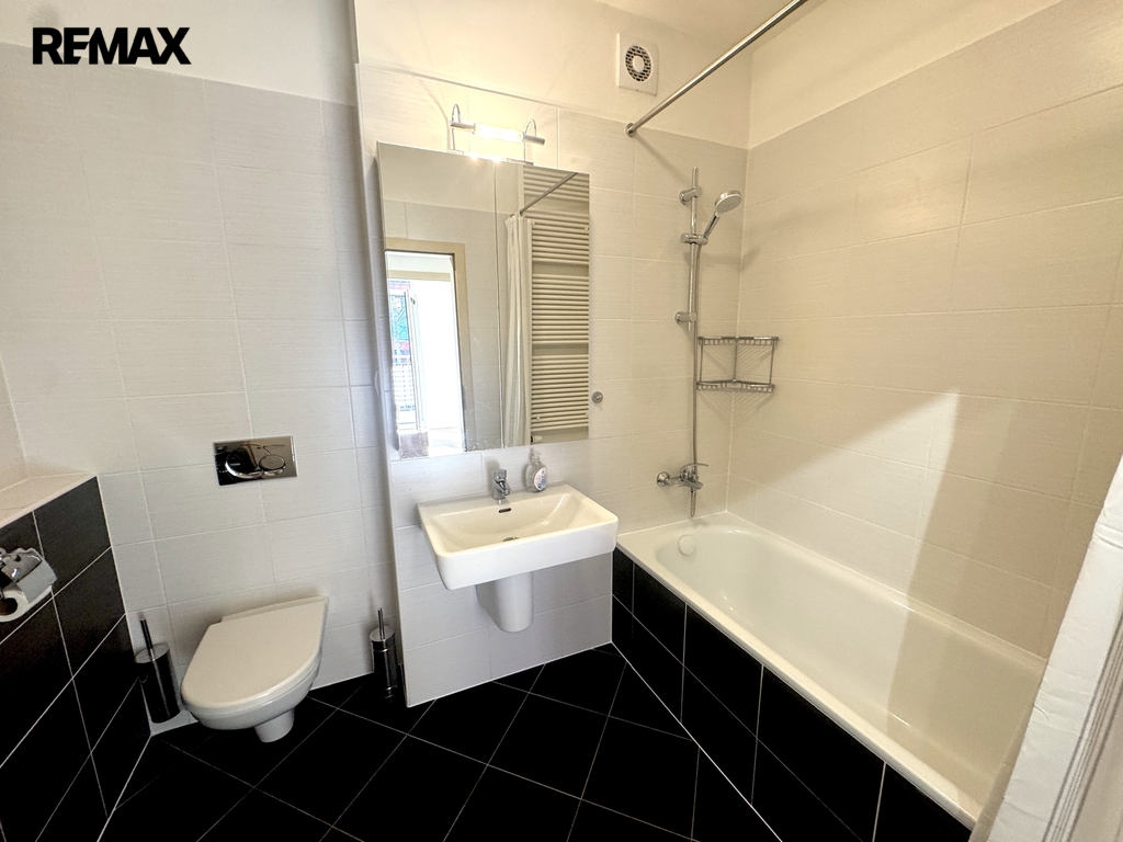 Je zde zcela nová kuchyňská linka se spotřebiči (v procesu dokončování), nové podlahy, čerstvé nátěry, žaluzie na oknech, svítidla. Prostorná vstupní chodba s praktickou komorou/šatnou, koupelna s vanou. Je nevybaven nábytkem, možnost dohody s majitelem, lze dodat i pračku či mikrovlnnou troubu. Díky velkým oknům je byt velice slunný a světlý po celý den. Vstup na balkon z obývacího pokoje i ložnice umožňuje nájemcům užívat si propojení interiéru s exteriérem každý den. K bytu náleží garážové stání.