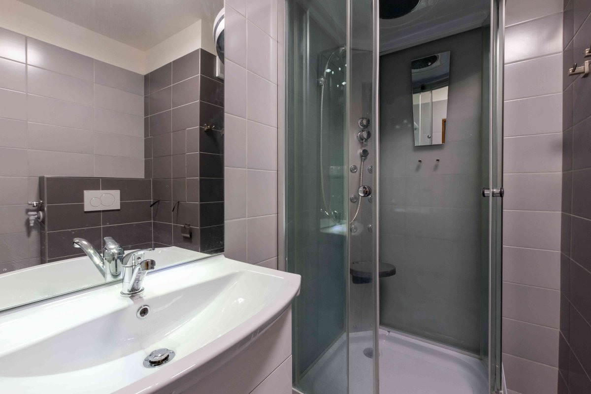 Byt se nabízí částečně vybavený. Součástí nové kuchyňské linky je lednice, myčka, elektrická trouba a sklo keramická deska. Obývací část je dále nezařízená a je zde vstup na balkón. Ložnice je nevybavená. Koupelna disponuje sprchou, umyvadlem a toaletou. V předsíni se nachází vestavěná skříň s dostatkem úložného prostoru. Pokoje jsou neprůchozí.