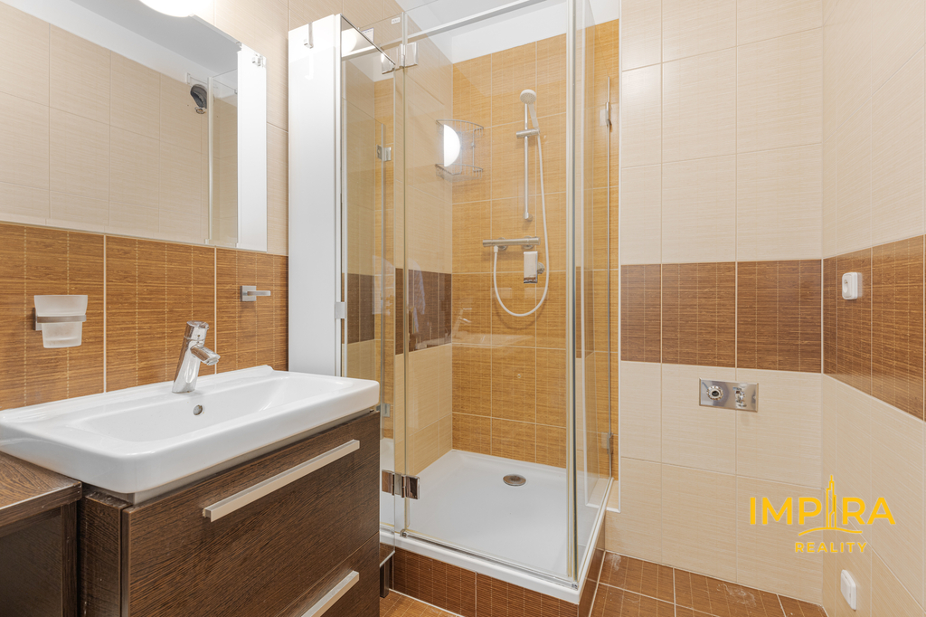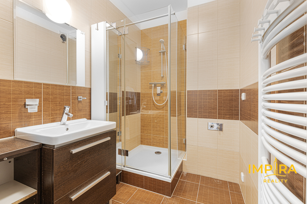 - Moderní koupelna se sprchovým koutem a oddělené WC