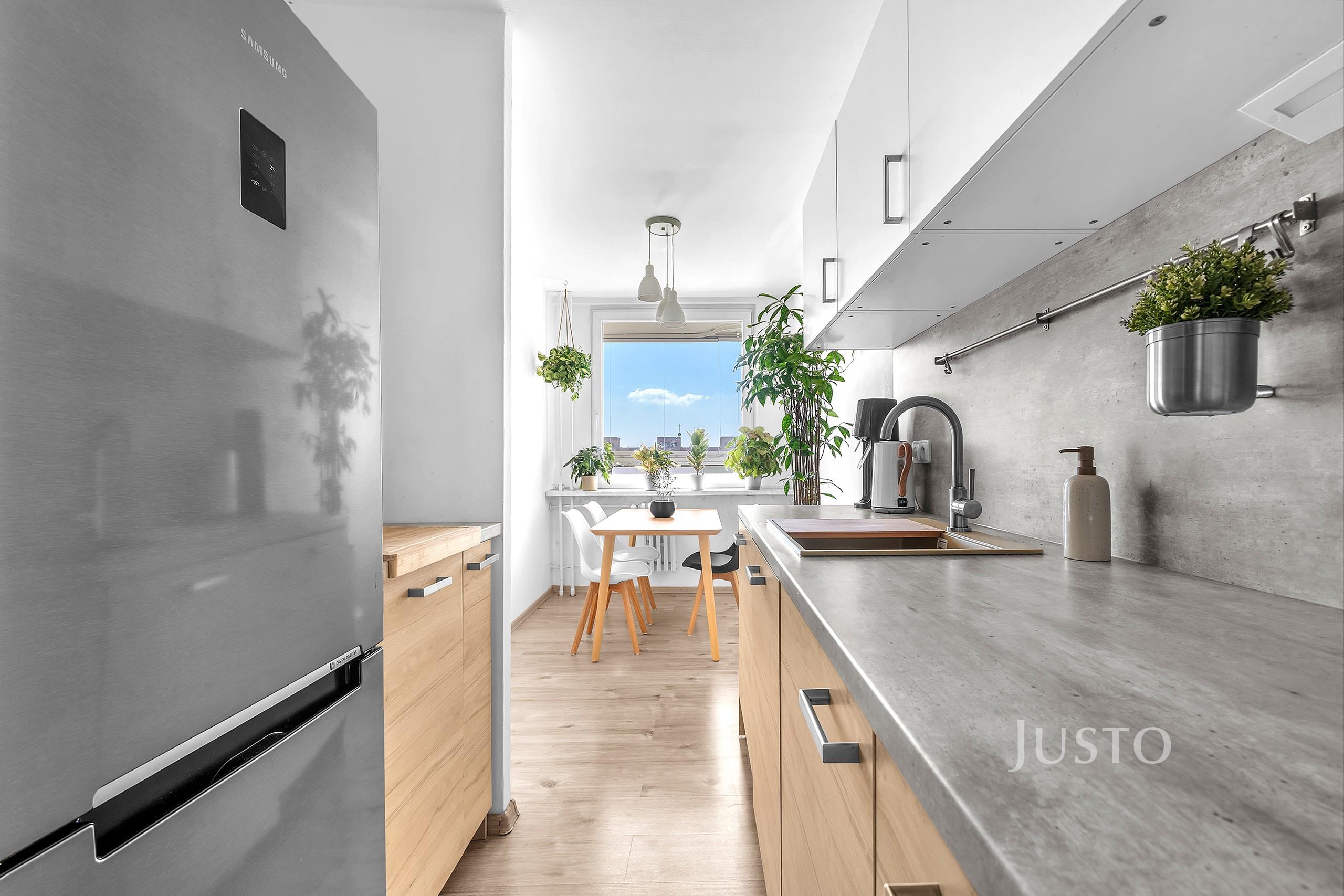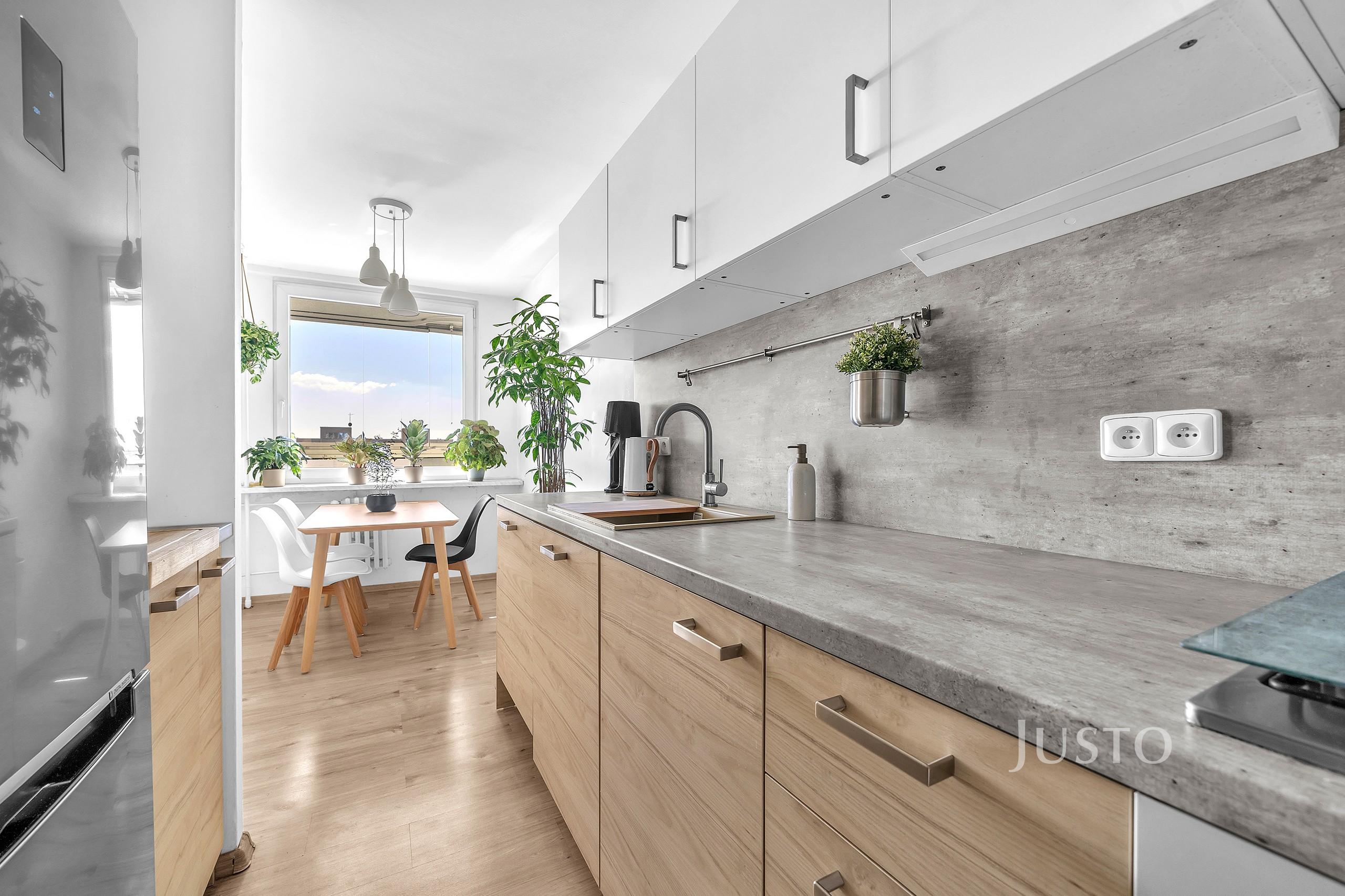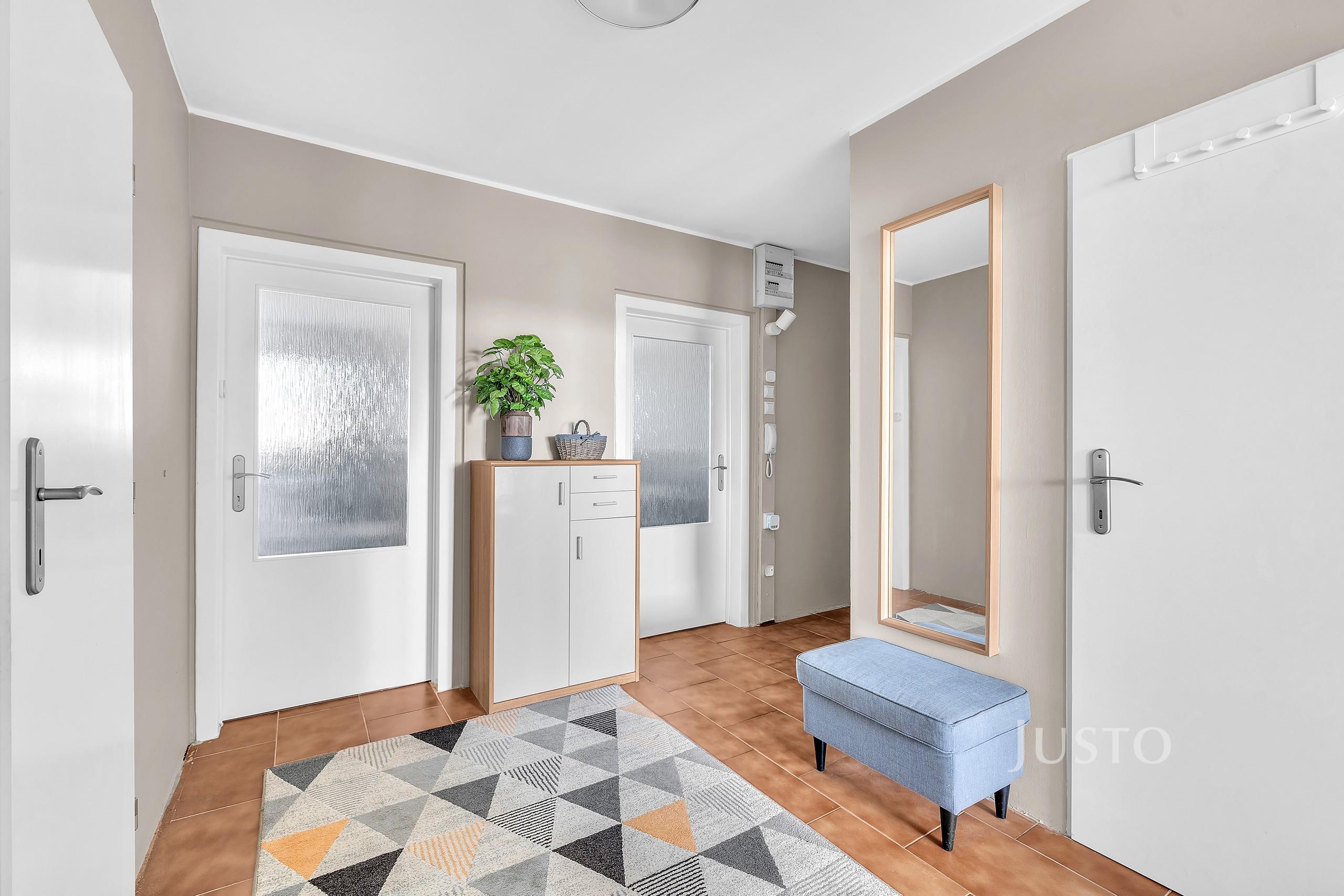 Bydlet budete v 10. nadzemním podlaží revitalizovaného panelového domu s výtahem. Dispozice bytu nabízí neprůchozí pokoje, což zajišťuje soukromí a pohodlí pro všechny členy domácnosti. Světlý obývací pokoj je propojený se vstupem na lodžii, která poskytuje příjemné posezení s jižní orientací a krásným výhledem do okolí. Okna obou ložnic směřují na severní stranu. Kuchyně je vybavena linkou s plynovou varnou deskou, myčkou, lednicí a dostatkem úložného prostoru. Součástí bytu je také praktická komora, která nabízí další místo pro uskladnění věcí. K bytu náleží sklep o ploše 1,5 m², umístěný na stejném patře.
