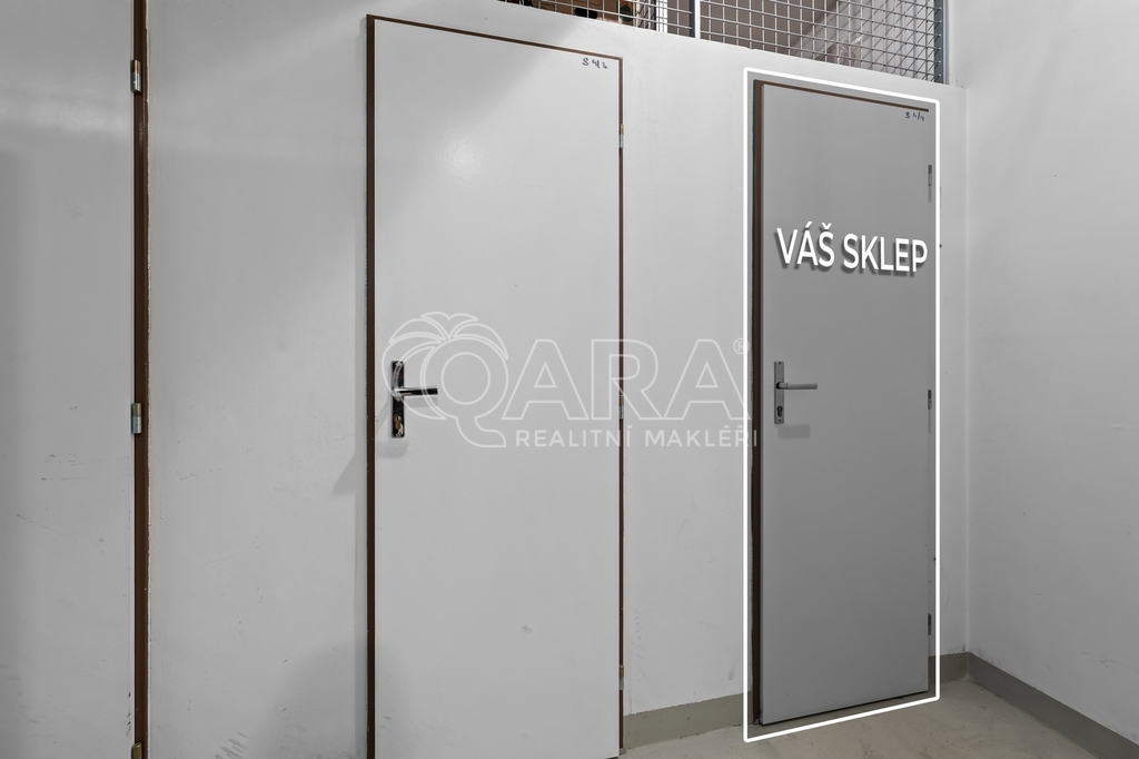V podzemním patře domu můžete využívat dvě vedle sebe stojící garážová stání a sklep o velikosti 3 m².