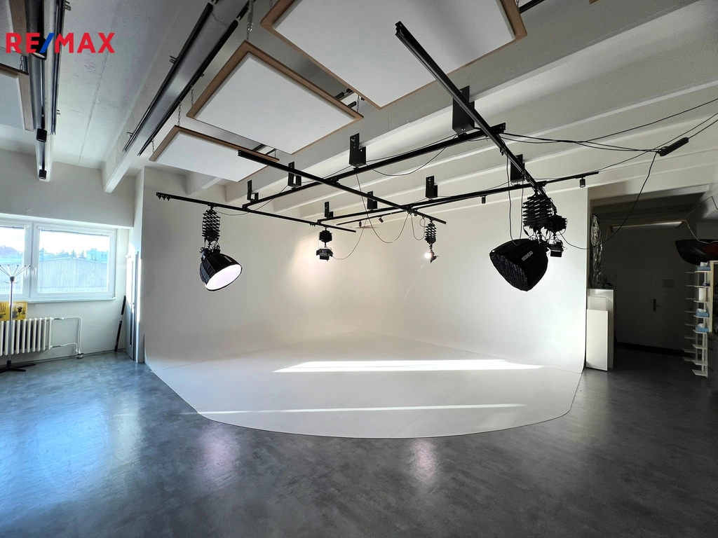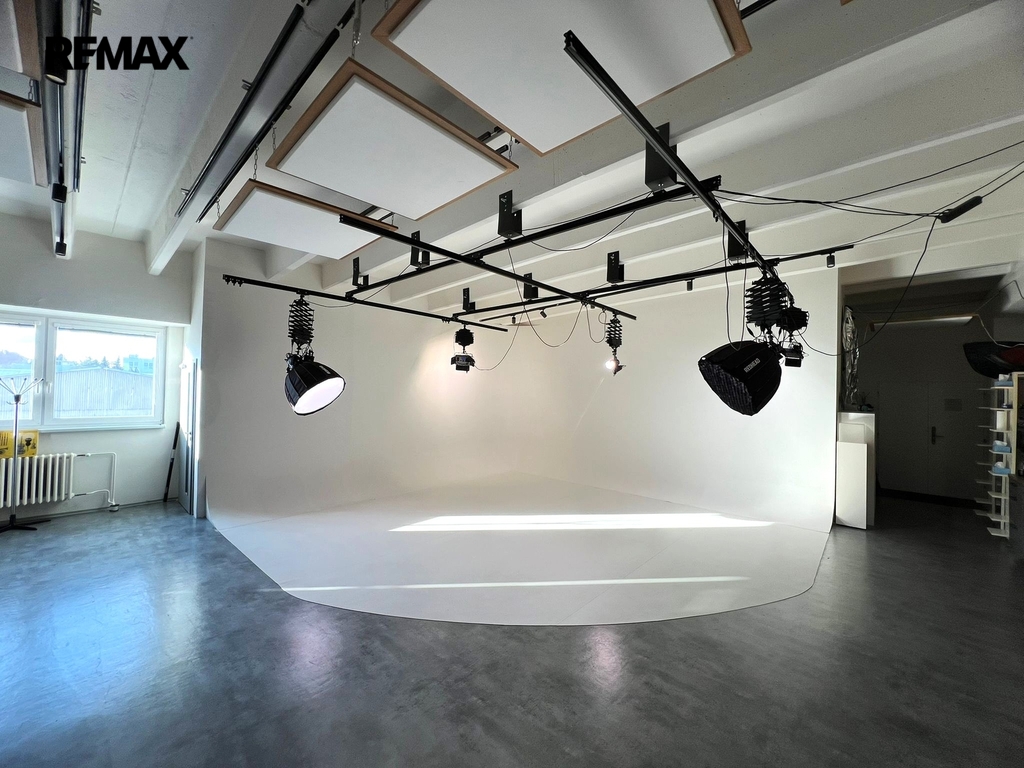 Součástí prostoru je nově vybudovaný ateliér o velikosti 100 m² s profesionálním nekonečným plátnem o ploše 36 m², ideální pro fotografickou a video tvorbu. Ateliér se nachází v atraktivní a dobře dostupné lokalitě s možností provozu 24/7.