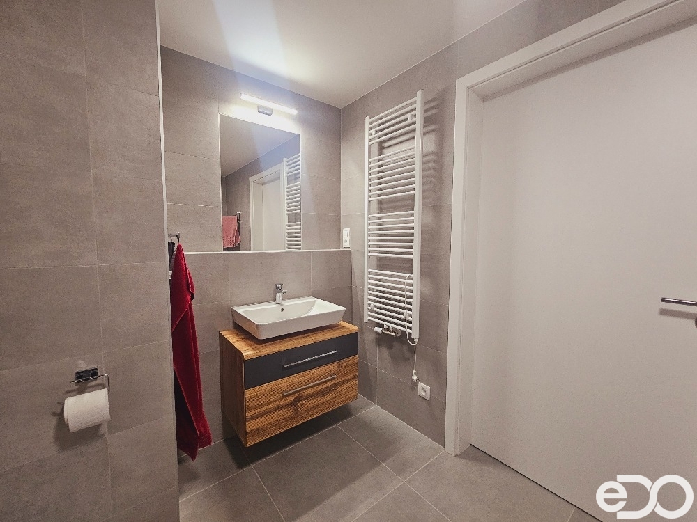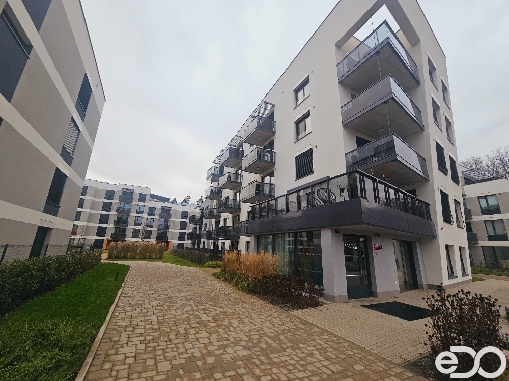 V zastoupení majitele bych Vám velmi rád nabídl k pronájmu atraktivní bytovou jednotku o dispozici 2+kk/B a celkové ploše necelých 55 m2, která se nachází ve 2. patře novostavby s výtahem, která je součástí uzavřeného areálu postaveného v roce 2023 od YIT. Bytová jednotka (obytná plocha 49,8 m2) má okna na jižní světovou stranu, na podlahách je vinyl, v koupelně je dlažba. Z hlediska vybavení zůstává v bytě kuchyňská linka včetně spotřebičů (sklokeramická deska, horkovzdušná trouba, lednice s mrazákem, digestoř, myčka), v ložnici velká skříň. Zbylé vybavení na fotografiích je na dohodě. Koupelna je prostorná s vanou a toaletou. Příslušenstvím je balkon (5 m2), na který je vstup z obývacího pokoje a také garážové stání, jež je součástí nájmu.