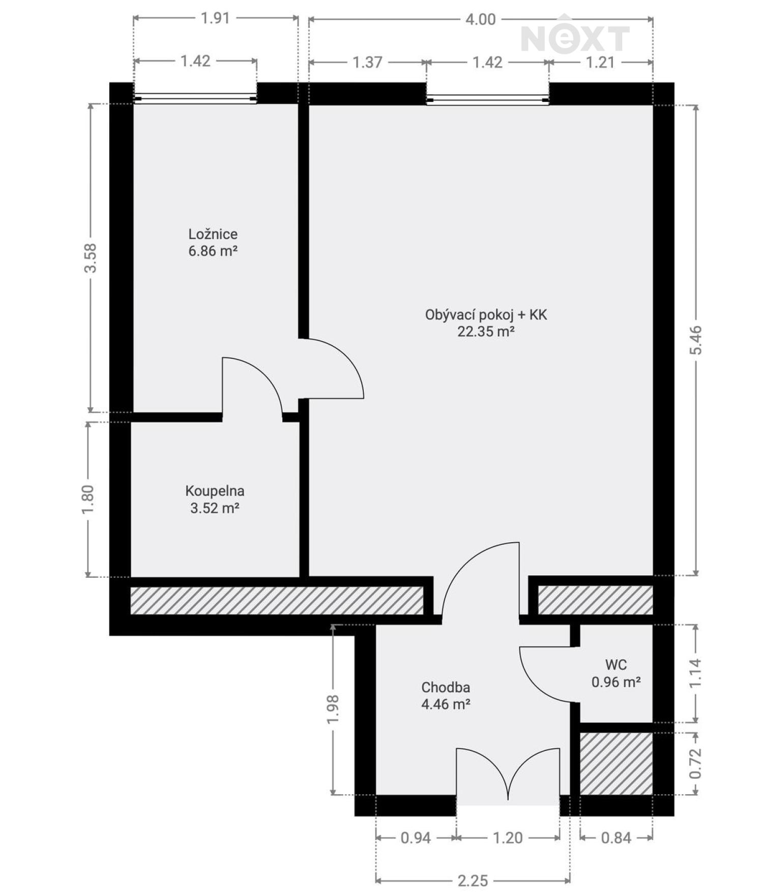 | Dispozice/podlahová plocha: | 2+kk/38 m² |