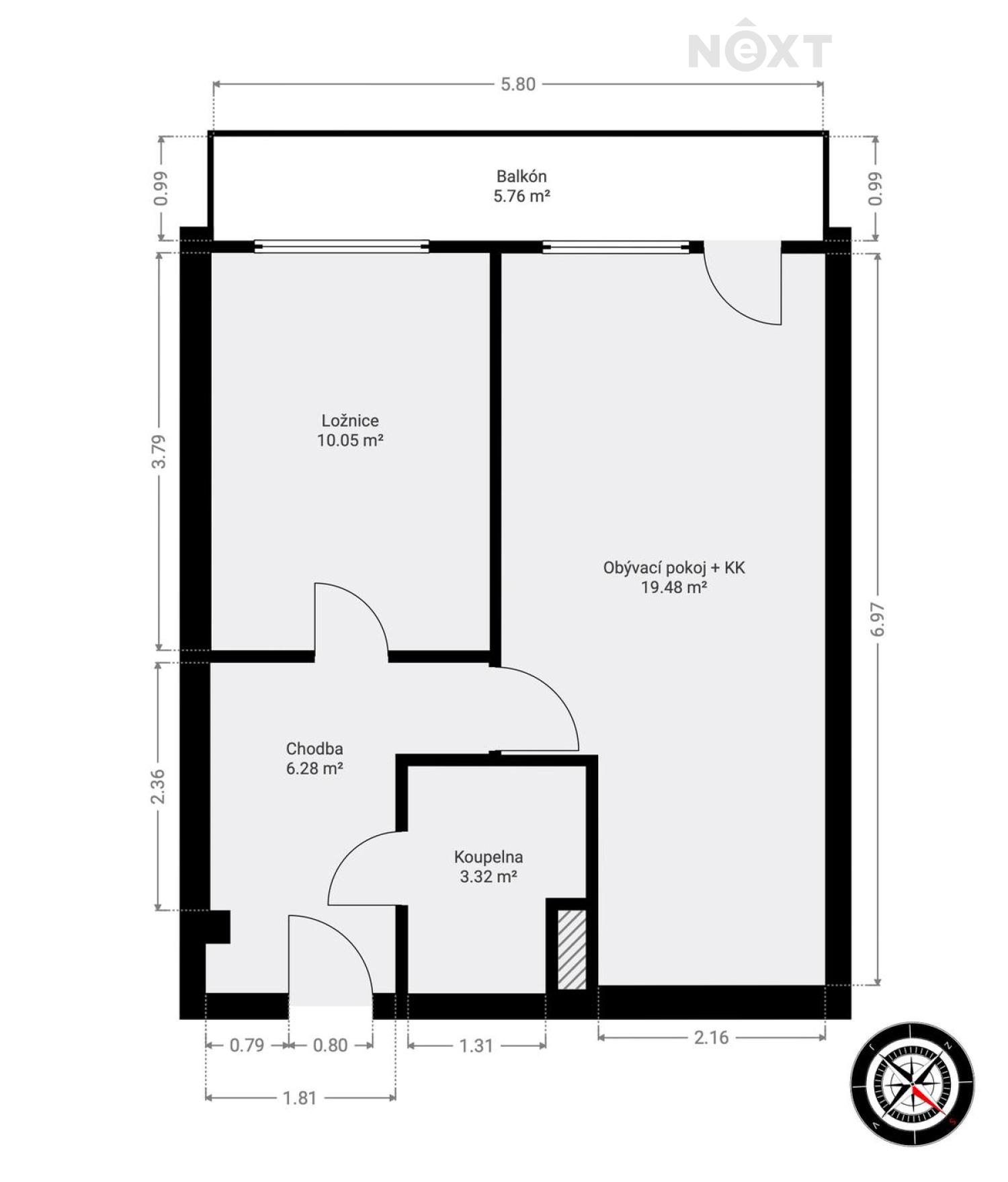 | Dispozice/podlahová plocha: | 2+kk/45 m² |