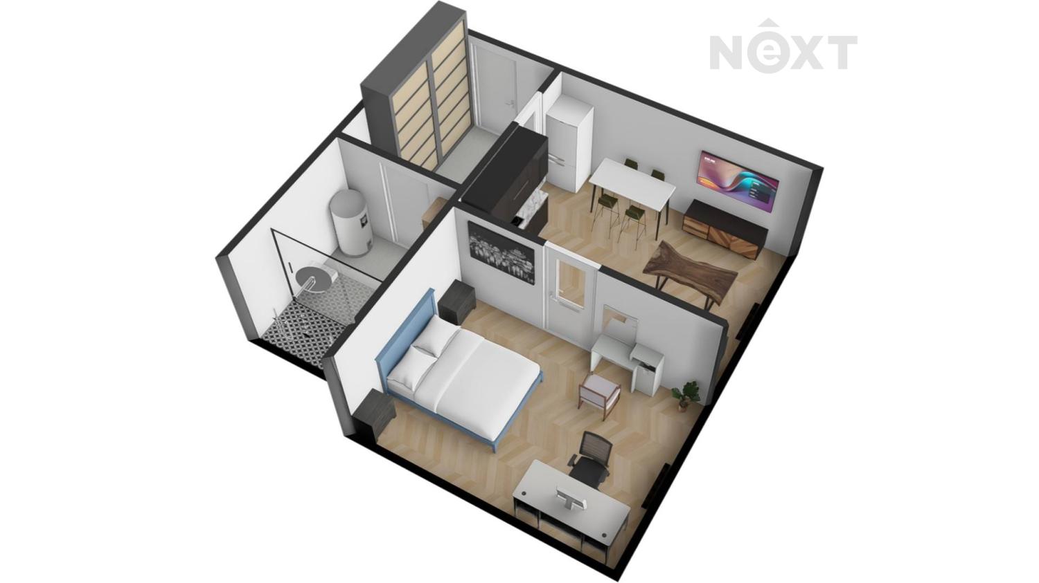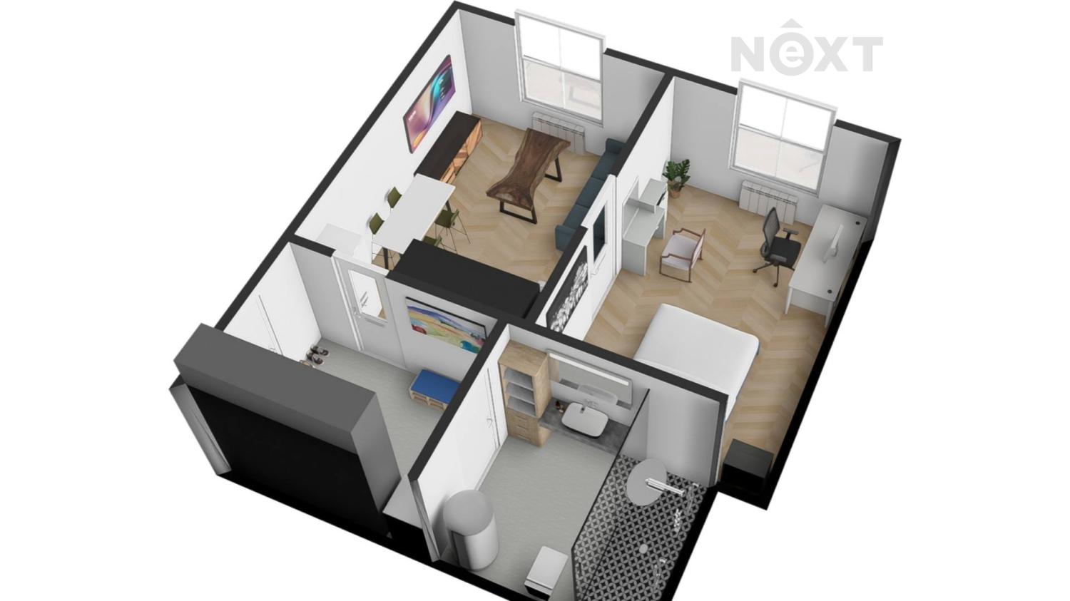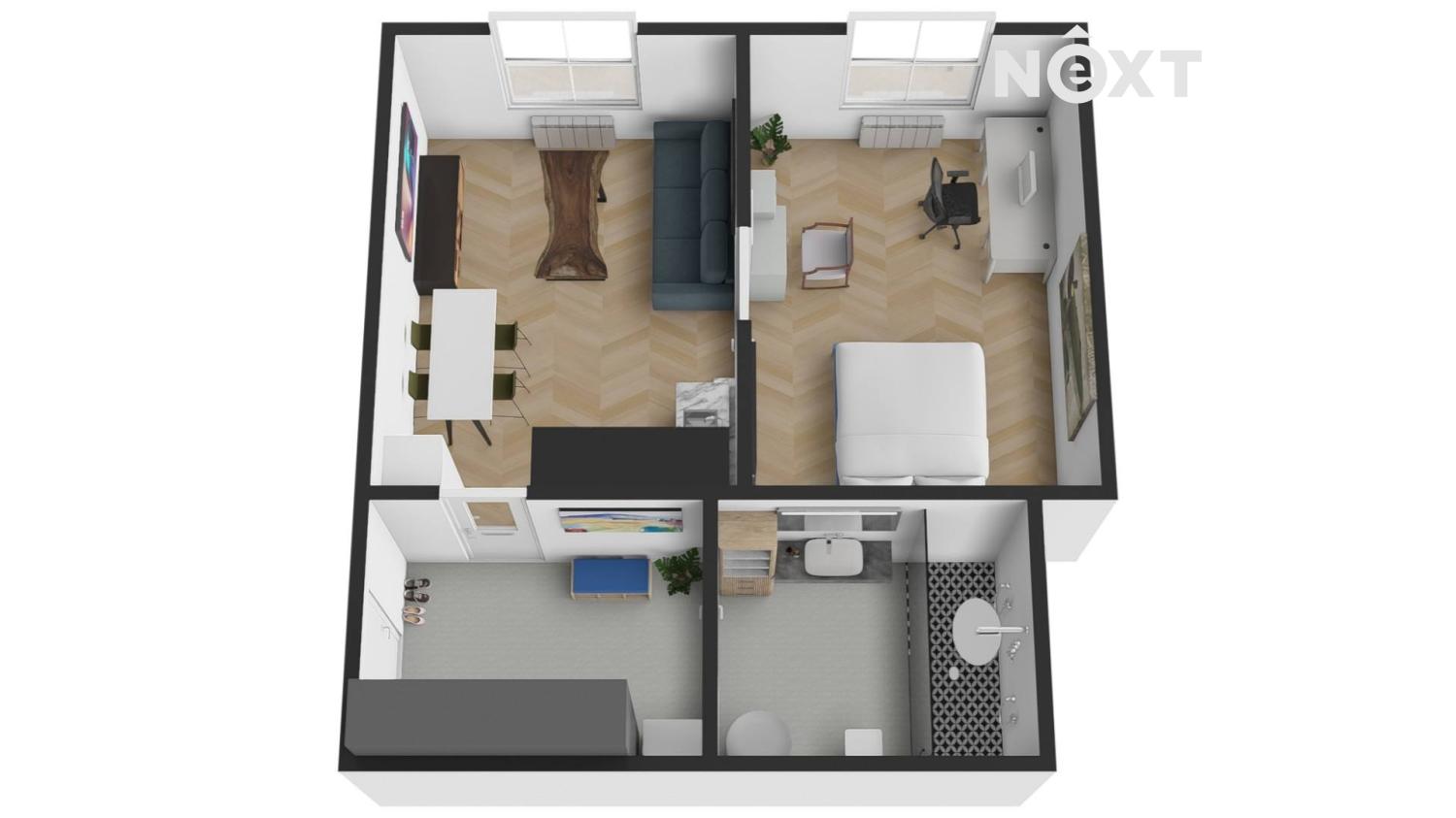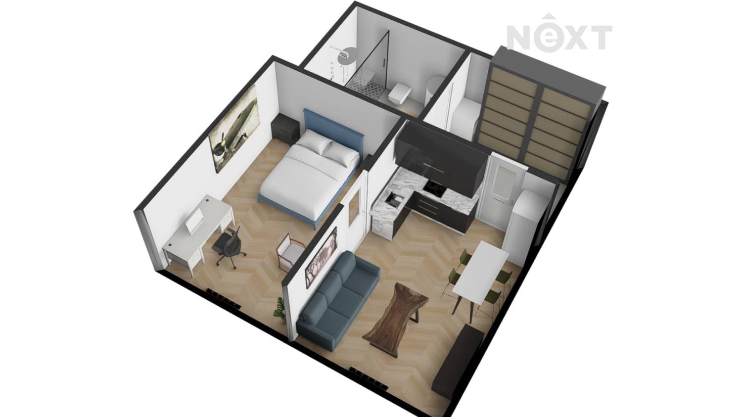| Dispozice/podlahová plocha: | 2+kk/47 m² |