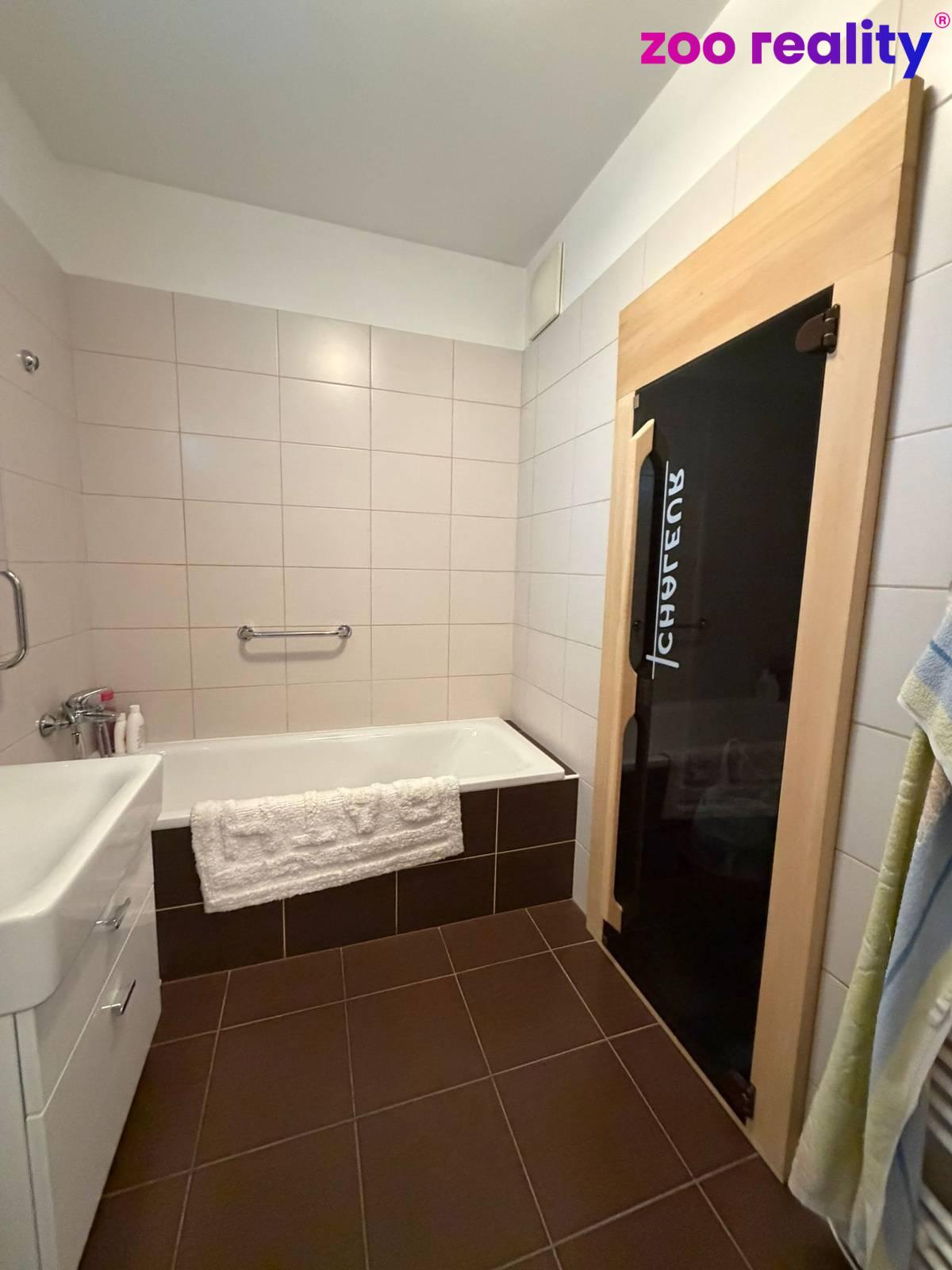 Jako příjemný bonus je zde také v koupelně zabudovaná sauna, což je velmi příjemné.