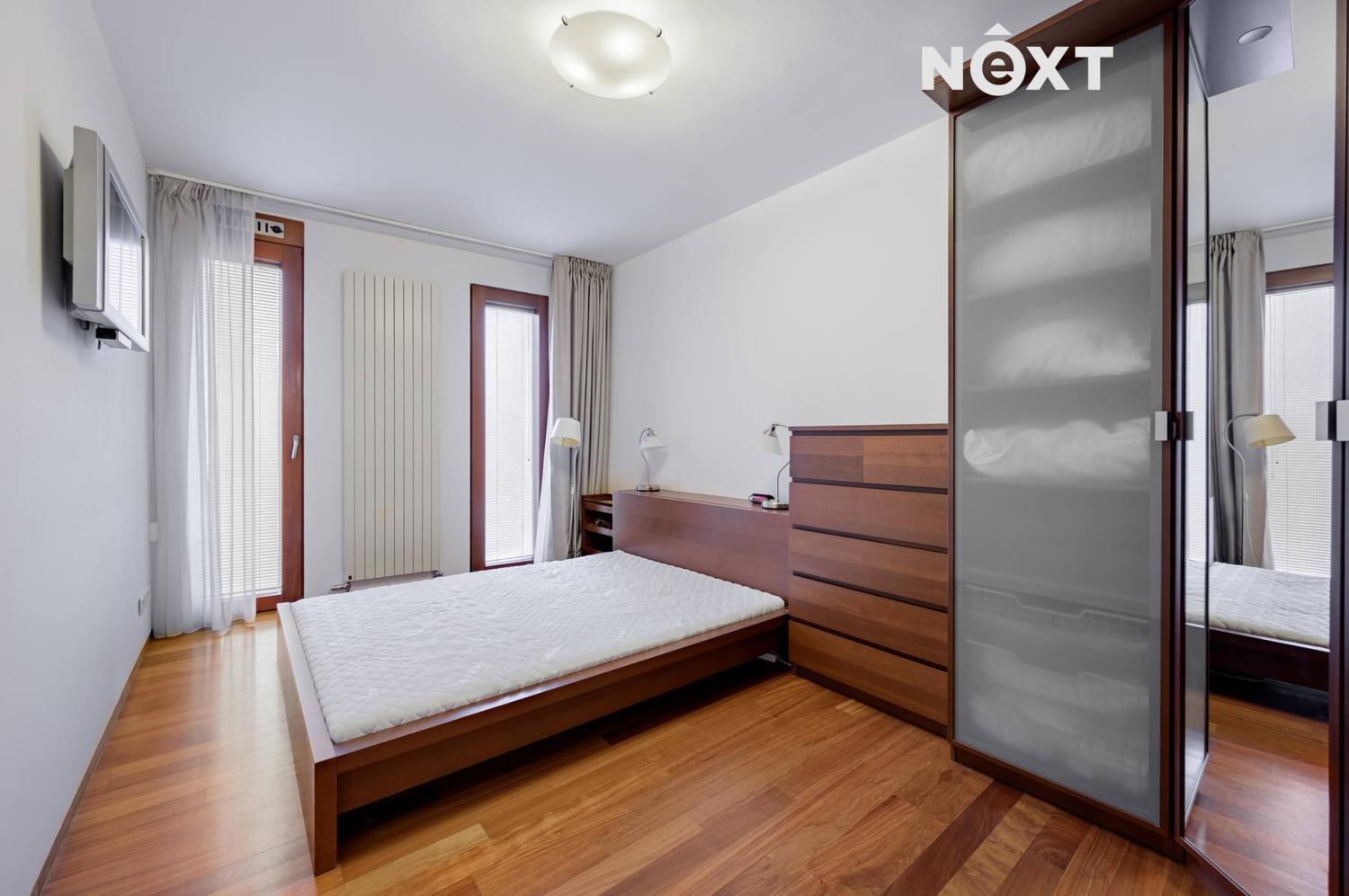 Two bedroom furnished apartment with a garage in Residence Villa Bianca for rent. The total area of the apartment is 107 sqm and is located on the 1st floor with an elevator. Consists of an entrance hall, living room with a dining area, fully equipped kitchen with appliances, 2 separate bedrooms, 2 bathrooms (bath, shower, toilet), separate toilet and a technical room (washing machine and dryer). Equipment of the apartment is modern. The floors are wooden and the bathrooms have terrazzo. The apartment has 1 underground garage space and a storage room. The building is guarded by 24-hour security and is fenced. Modern living with excellent transport accessibility (tram, metro). Available immediately. Deposit required. Pro komunikaci uvádějte evidenční číslo zakázky N116070.