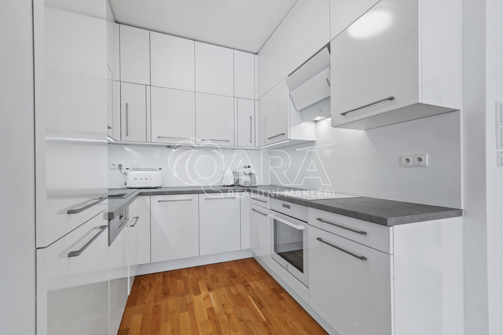Nabízíme k pronájmu nadstandardní, světlý byt o dispozici 4+kk v prestižní uzavřené rezidenci Baarova v Praze 4 – Michle / Brumlovka.