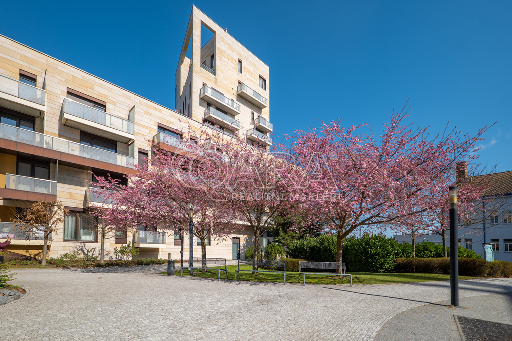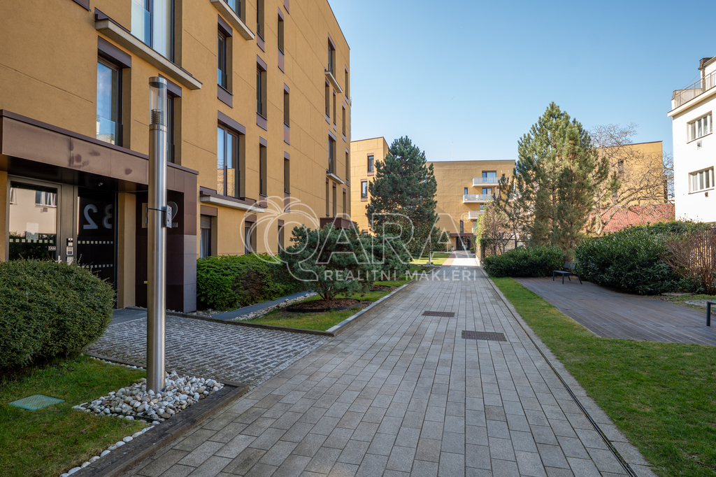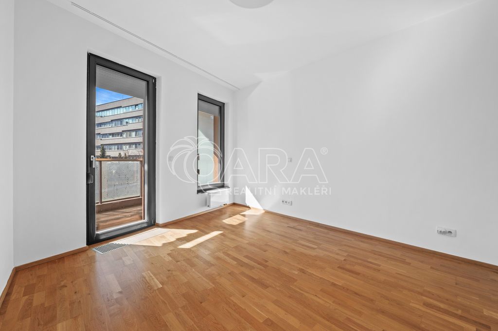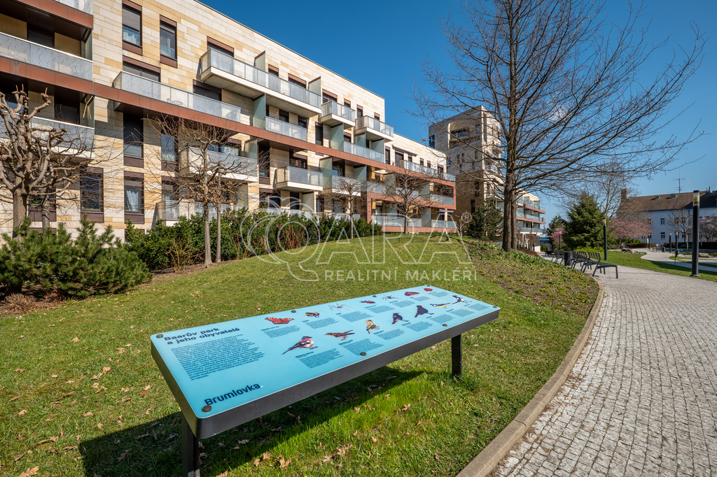 Pronájem prostorného bytu 4+kk (109 m²) se dvěma balkony, garážovým stáním a recepcí – Rezidence Baarova, Praha 4