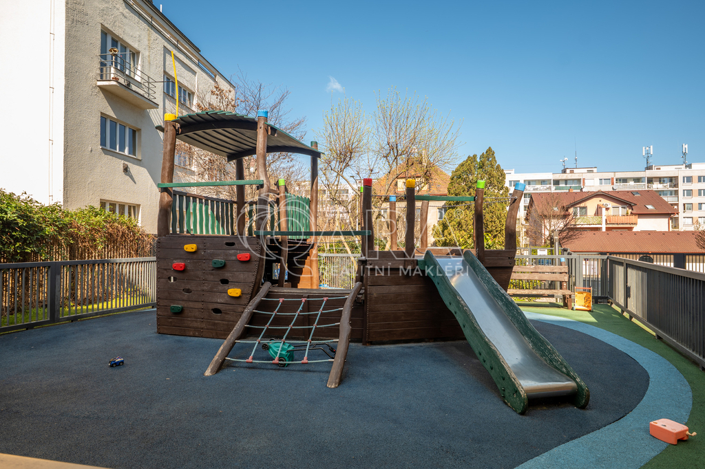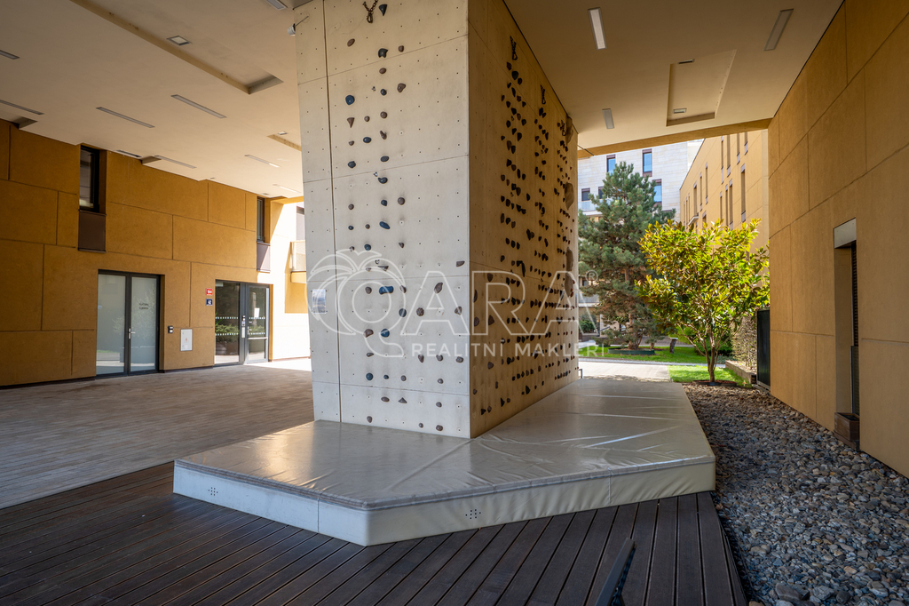 • uzavřený areál s dětským hřištěm a horolezeckou stěnou