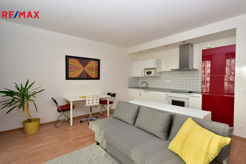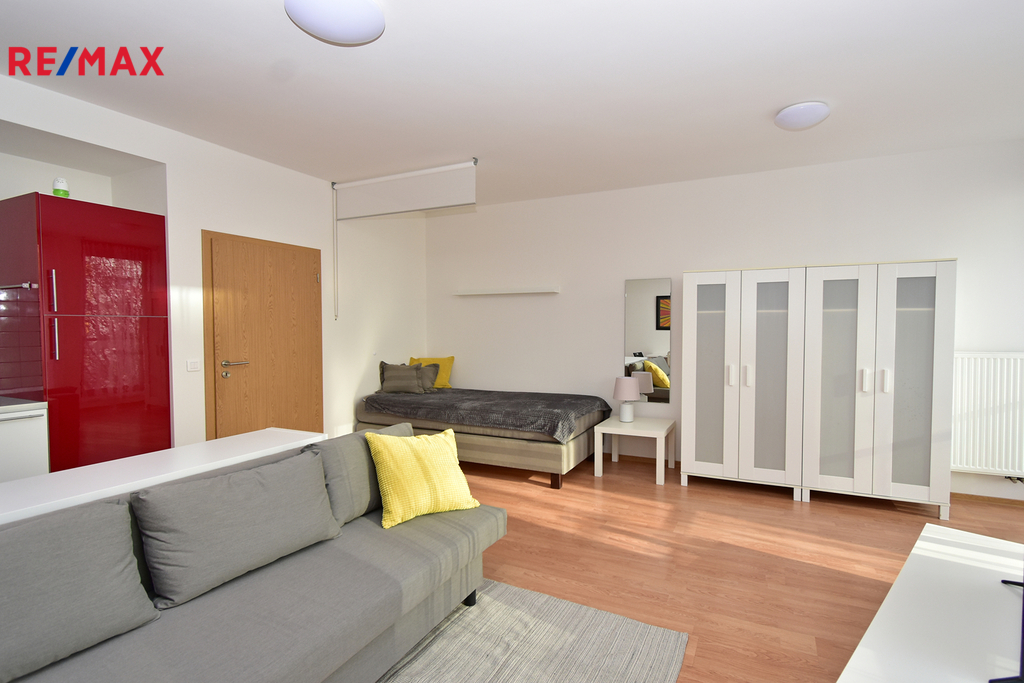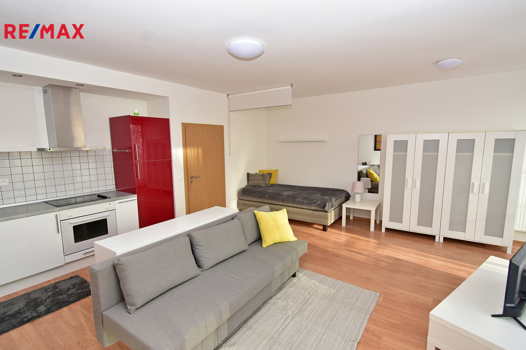 Bytová jednotka o výměře 36,5 m2 Vám nabízí vstupní chodbu včetně příslušenství, prostornou koupelnu po kompletní rekonstrukci (včetně sprchového koutu, toalety, umyvadla, pračky a topného žebříku), obývací pokoj se vstupem na balkón. Dále jídelní kout, kuchyňský kout včetně vestavných spotřebičů (fungl nová lednice s mrazákem, myčka, varná deska, digestoř, elektrická trouba) a mikrovlnné trouby. Součástí pronájmu je balkón o výměře 3 m2, zařízení / nábytek dle fotodokumentace, pračka v koupelně, konzole + záclony + závěsy, kompletní osvětlení. Jednotka prošla rekonstrukcí koupelny, kompletně nové výmalby atd. Byt je velmi slunný a světlý. Doporučujeme prohlídku nemovitosti.
