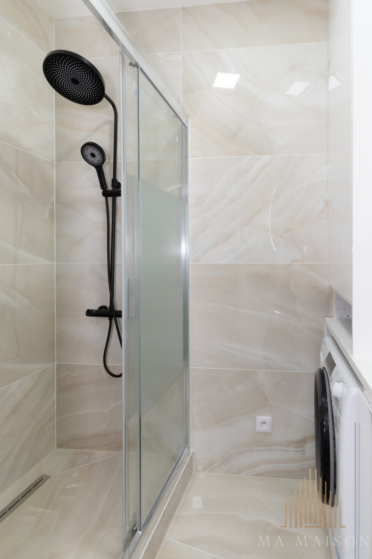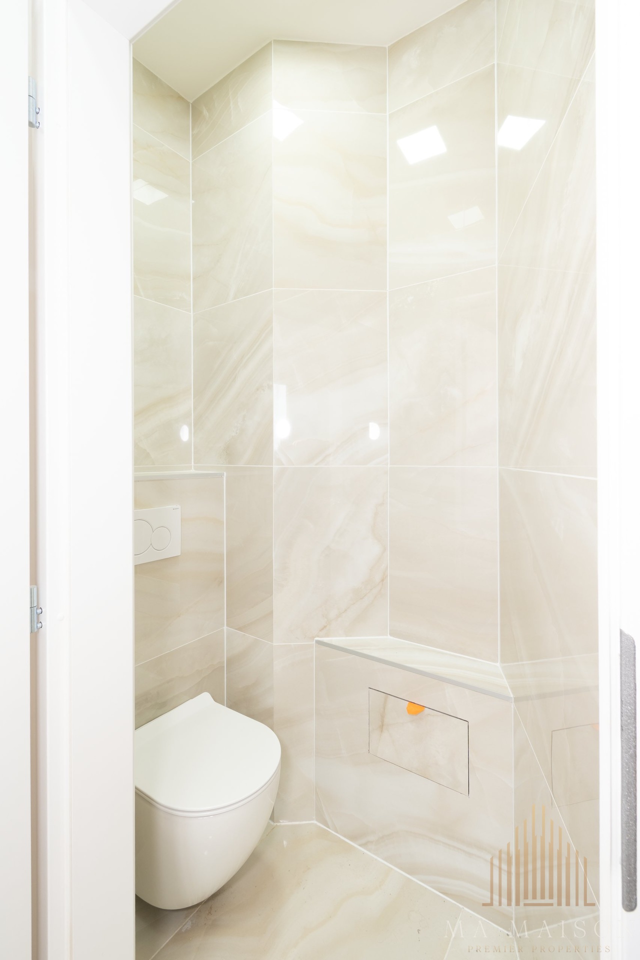 Dispozice bytu je praktická a přehledná. Ve vstupní předsíni jsou k dispozici závěsné skříňky. WC je samostatné. Koupelna je vybavena sprchovým koutem, pračkou a umyvadlem se zrcadlem. Kuchyně je plně vybavena spotřebiči – lednicí s mrazákem, sporákem, troubou, digestoří a myčkou. V obytné části se nachází postel a samostatně stojící skříňová stěna. Veškeré vybavení i spotřebiče jsou nové. Z bytu je vstup na velkou terasu, která poskytuje dostatek soukromí a prostoru k odpočinku. Vytápění i ohřev vody zajišťuje elektrokotel, v koupelně, na WC a v předsíni je podlahové vytápění.