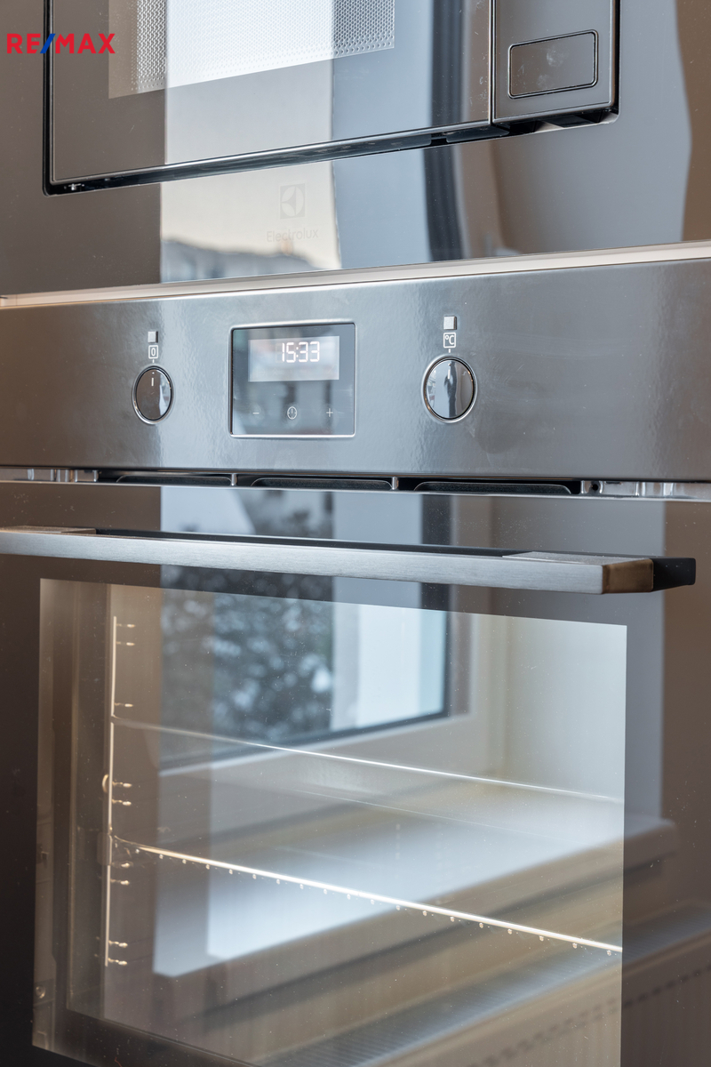 Interiér bytu je vybaven novou prémiovou kuchyňskou linkou zn. Hanák včetně vestavných spotřebičů zn. Electrolux (lednice a oddělený mrazák, myčka, trouba, mikrovlnná trouba a indukční deska). Byt je vytápěn individuálně novým elektrickým kotlem.