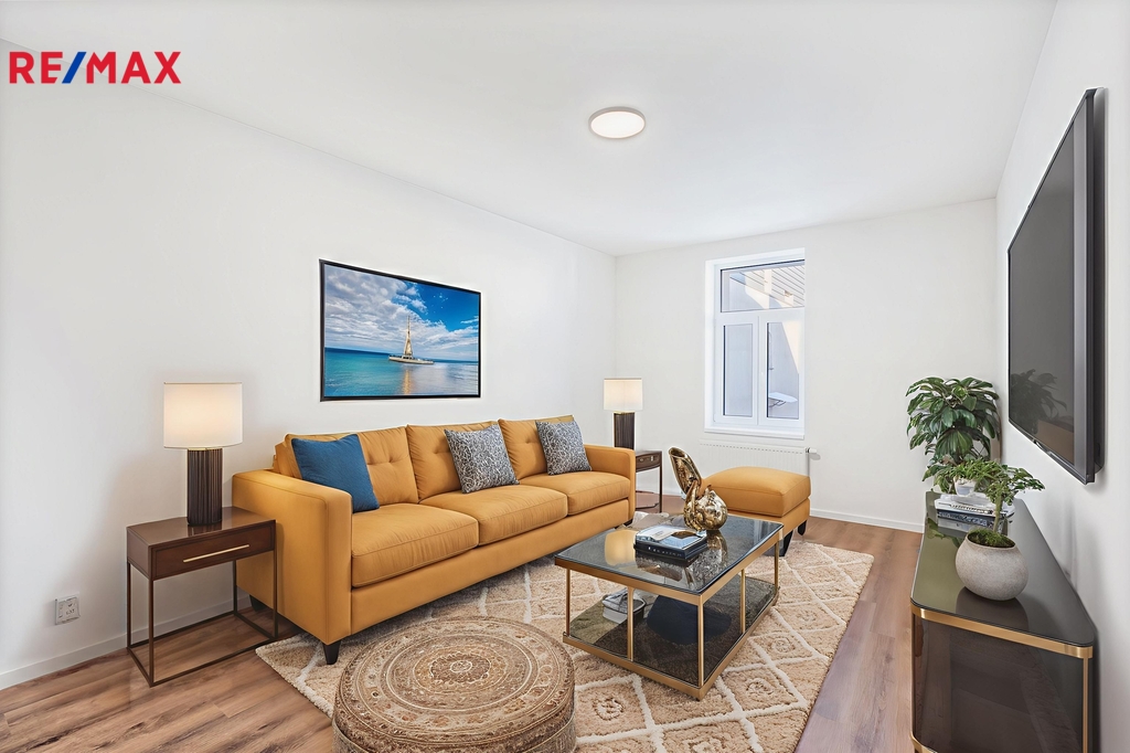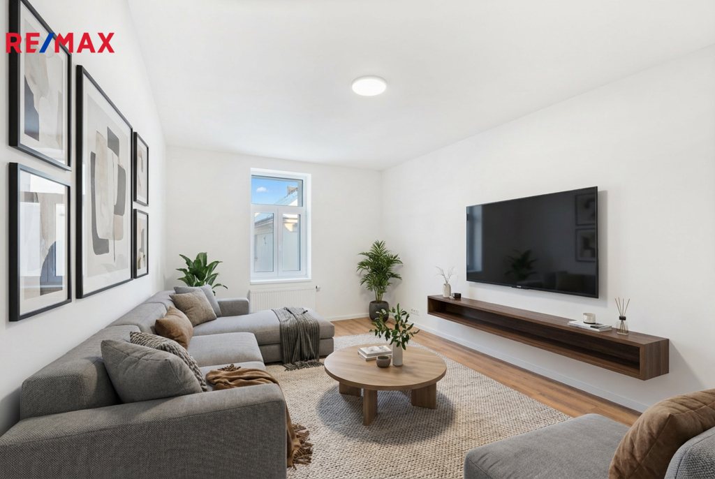 Právě vám představujeme krásný, prostorný a zrekonstruovaný byt 1+1 (40,7 m² užitné plochy), který se nachází ve 2. NP (1. patře) cihlového domu rovněž po rekonstrukci. Byt má velmi kompaktní dispozici – velký hlavní pokoj, samostatnou kuchyň s jídelním koutem, prostornou koupelnu s denním světlem a oddělené WC.