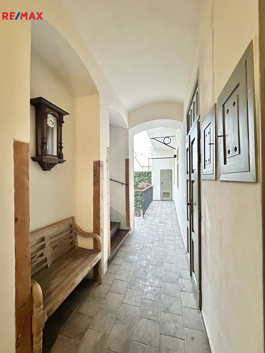 Dovolujeme si vám nabídnout pronájem bytu na opravdu výjimečném místě Prahy 1. Jen pár kroků od Vltavy, v klidné Anežské ulici na Starém Městě, se nachází byt 1+1 o ploše 39 m², který nabízí bydlení v opravdovém srdci Prahy. Všechna nejkrásnější místa Starého Města máte doslova pár minut chůze, přesto byt leží stranou turistického ruchu ve slepé ulici – v naprostém klidu. Historický dům s pavlačemi, vlastní zahradou, půvabným schodištěm a výhledem na kostel svatého Haštala dodává bytu nezaměnitelnou staropražskou atmosféru.