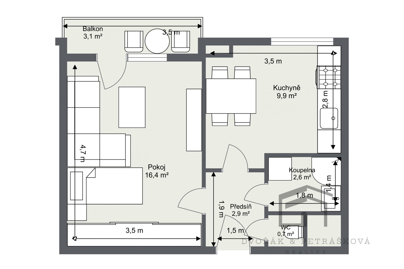 - Dispozice bytu: 1+1
