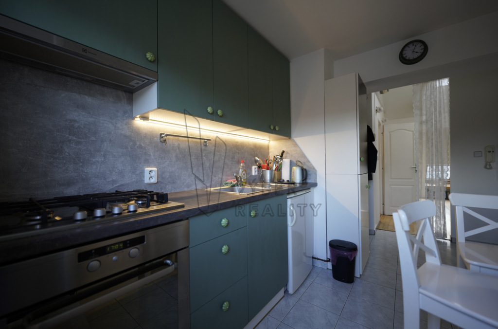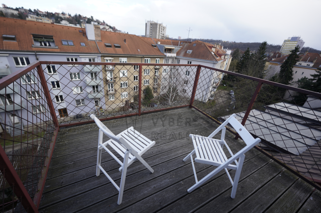 Nabízíme k pronájmu jedinečný podkrovní byt o dispozici 1+1 a celkové ploše 41 m² s příjemnou střešní terasou (6 m²), situovaný v klidné ulici Na Mlejnku, Praha 4 – Braník. Byt se nachází ve 4. patře domu bez výtahu a zaujme svou atypickou atmosférou i dostatkem přirozeného světla díky střešním oknům v hlavním pokoji. Interiér působí vzdušně a útulně zároveň. Koupelna je vybavena rohovou masážní vanou, umyvadlem a pračkou. Kuchyň disponuje kuchyňskou linkou se spotřebiči a nabízí přímý vstup na střešní terasu – ideální místo pro ranní kávu, relaxaci nebo večerní posezení či grilování s přáteli. Vytápění a ohřev vody zajišťuje vlastní plynový kotel. K bytu náleží také sklepní kóje. Parkování je možné v jednosměrné ulici před domem. Byt je vybaven pračkou a nábytkem viz fotografie.