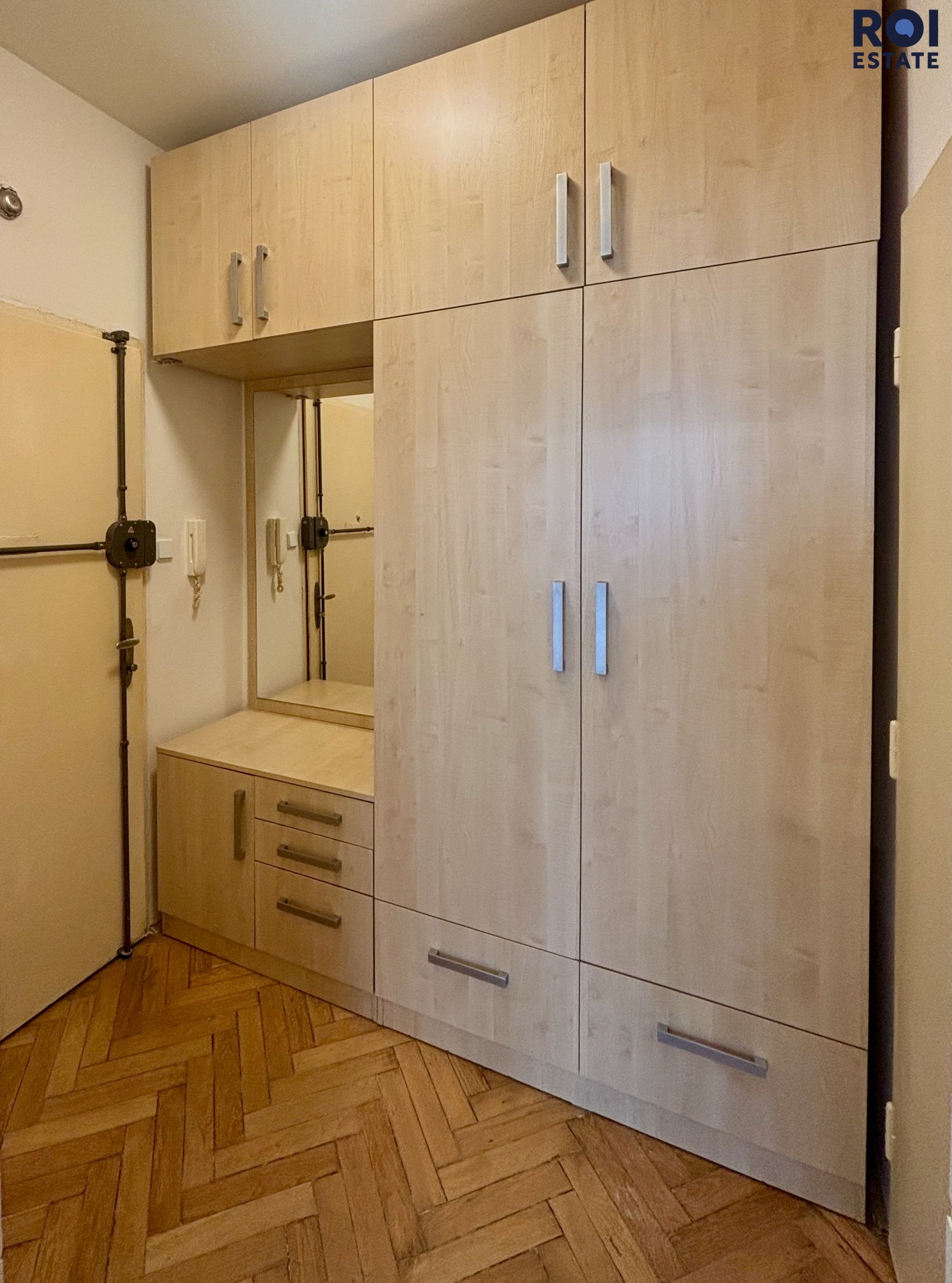 Byt se nachází v 6. patře a nabízí uklidňující výhled do vnitrobloku se zelení.