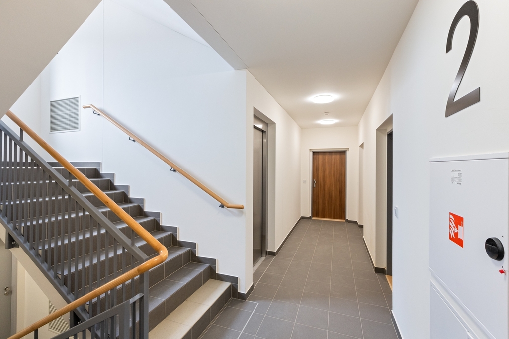 Byt je vybaven rekuperací pro zajištění čerstvého vzduchu, bezpečnostními vchodovými dveřmi a přípravou na venkovní žaluzie.