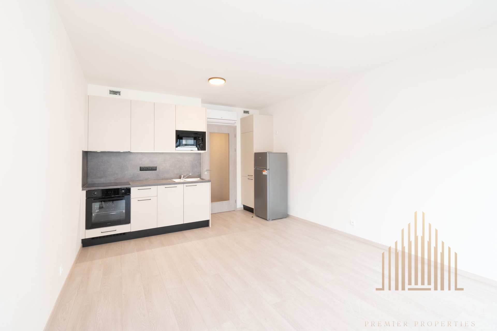 Byt se nachází v 5. patře a disponuje světlým obytným prostorem s kuchyňským koutem, který je vybaven moderními spotřebiči, jako je elektrická trouba, varná deska, digestoř, lednice a myčka na nádobí. V předsíni se nachází vestavěná šatní skříň. Koupelna je vybavena sprchovým koutem, umyvadlem, WC a zrcadlem s osvětlením.