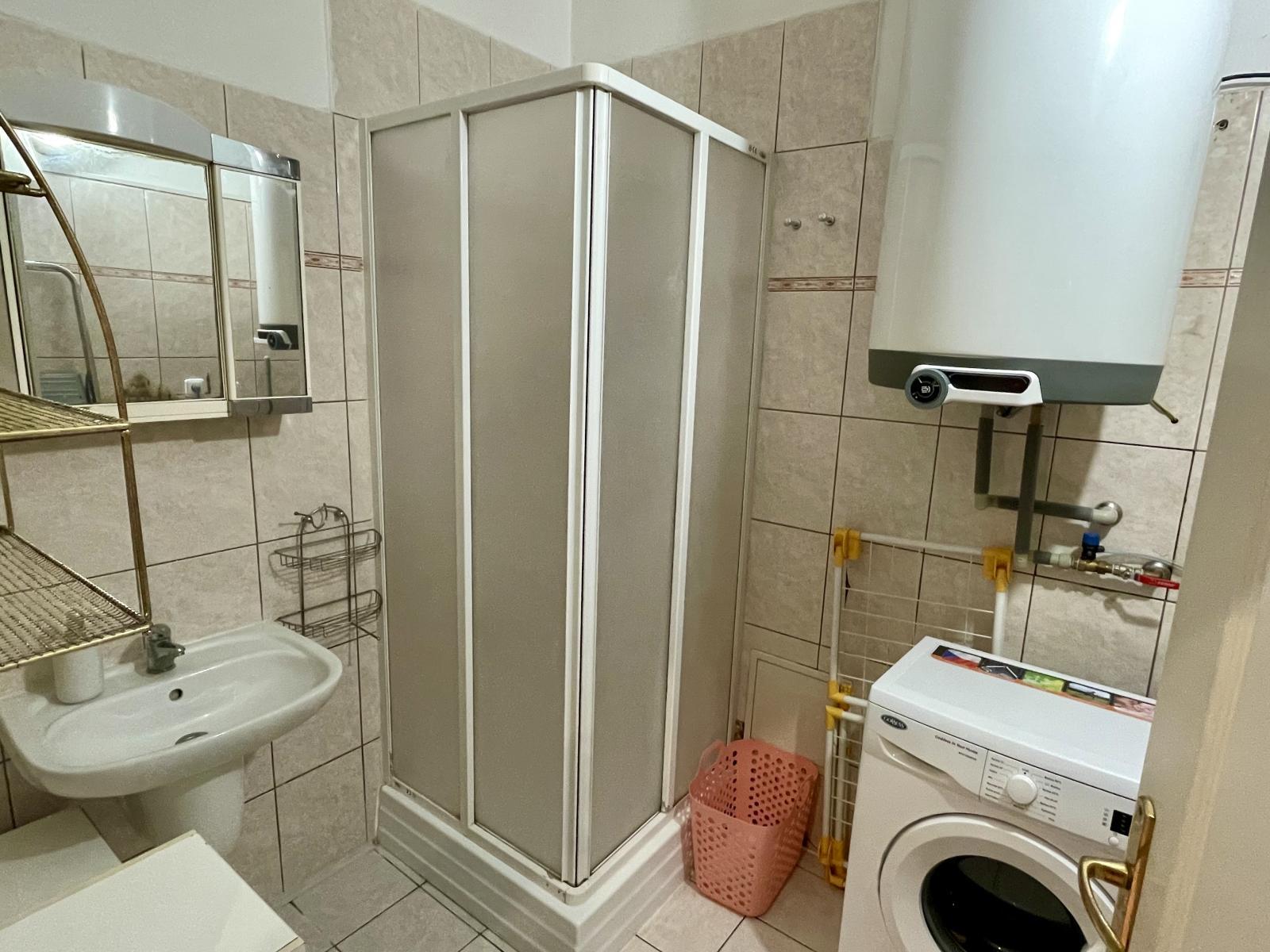 Koupelna se sprchovým koutem a odděleným WC, kuchyňská linka se sklokeramickou varnou deskou, elektrickou zabudovanou troubou, myčkou, odsavačem par a vestavnou lednicí s mrazákem. Součástí pronájmu jsou dále - malý jídelní stůl se židlemi, sedací souprava s křeslem a konferenčním stolkem, patrová postel, šatní skříň. TV a pračka nejsou součástí. Vytápění lokální plynové WAW, ohřev vody bojlerem.