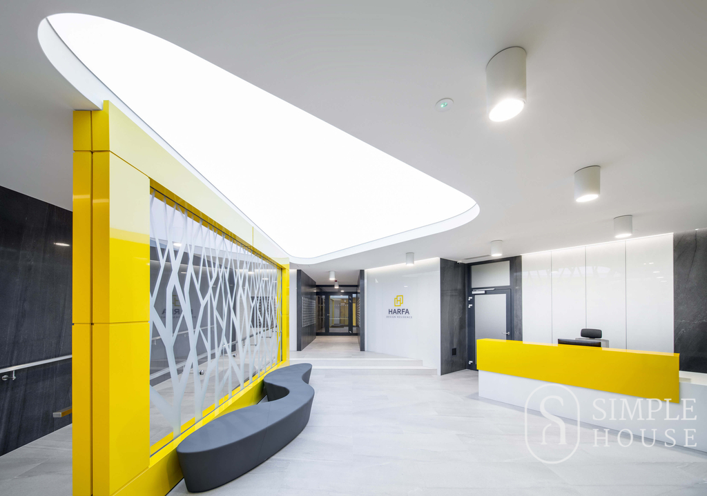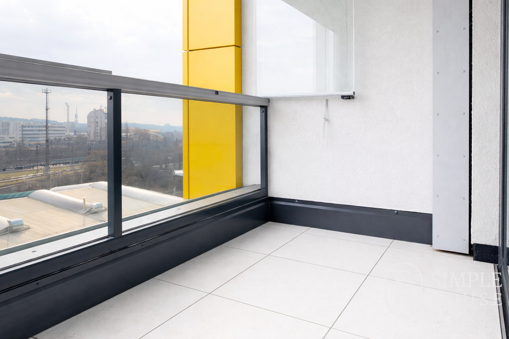 Nabízíme k dlouhodobému pronájmu nový, slunný byt 1+kk o celkové ploše 34 m² se zasklenou lodžií 6 m² a sklepem 4 m², který se nachází v 8. nadzemním podlaží moderní novostavby v ulici Kurta Konráda, Praha 9 – Libeň, v projektu Harfa Design Residence.