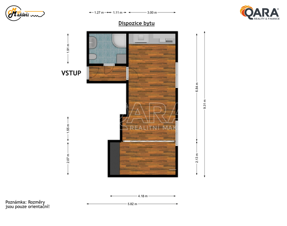 - Dispozice bytu: 1+kk