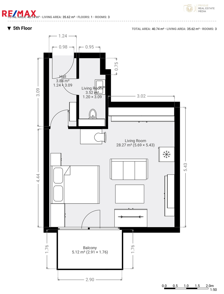 | Dispozice/podlahová plocha: | 1+kk/36 m² |