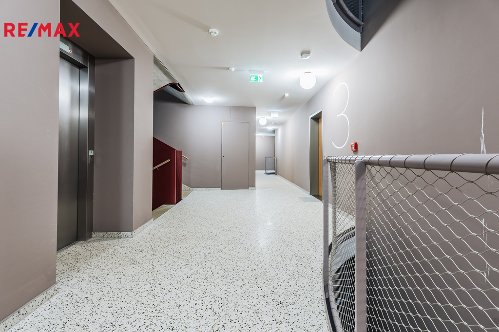 Bytový dům disponuje výtahem a nabízí tedy bezbariérový vstup do bytu. K bytové jednotce náleží prostorná sklepní kóje, která je přístupná z podzemních garáží.