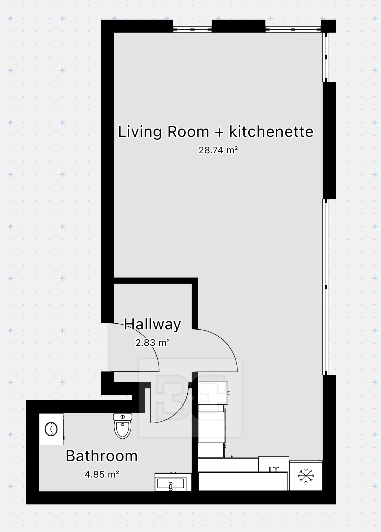 - Dispozice bytu: 1+kk