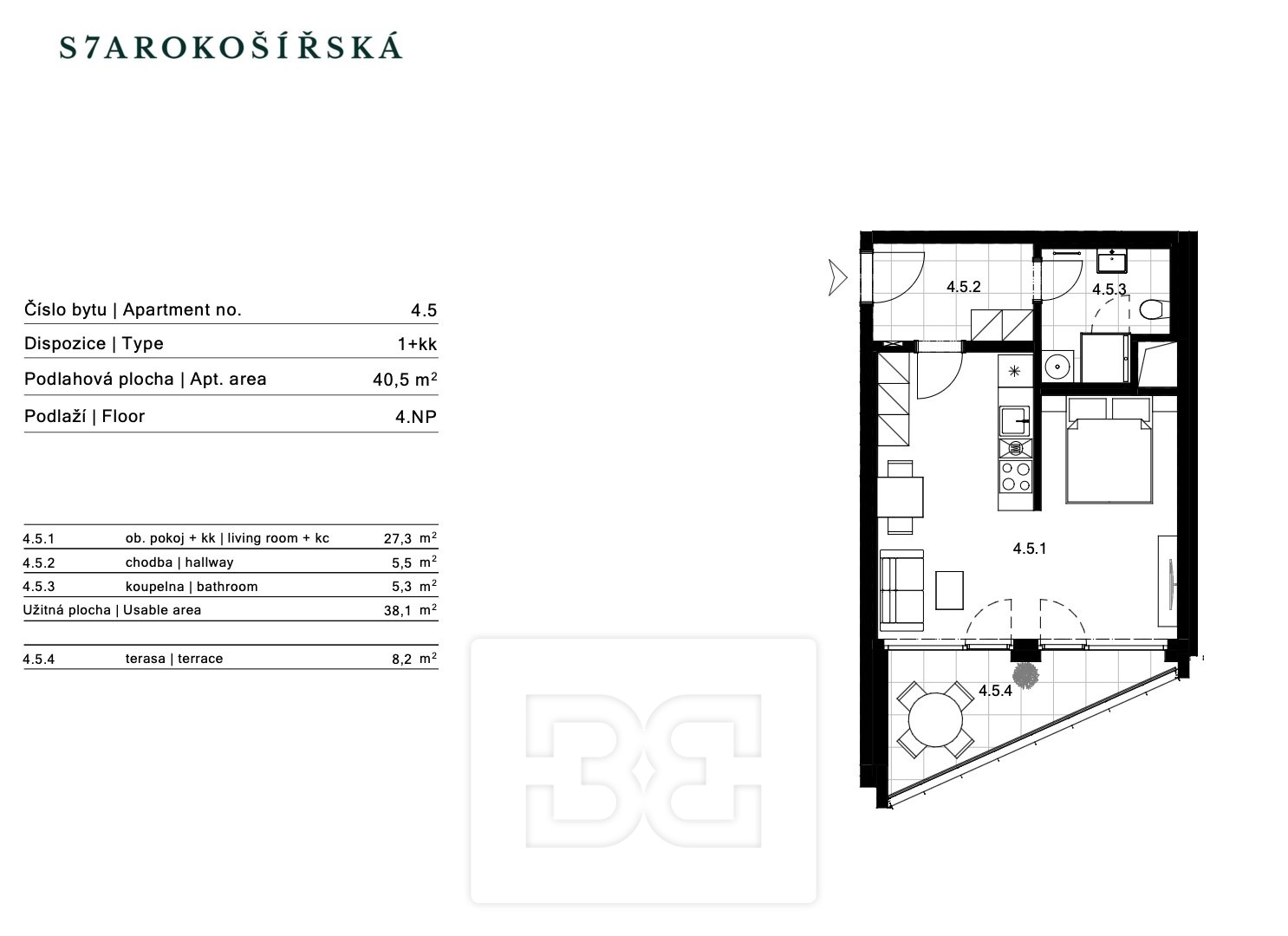 | Dispozice/podlahová plocha: | 1+kk/40 m² |