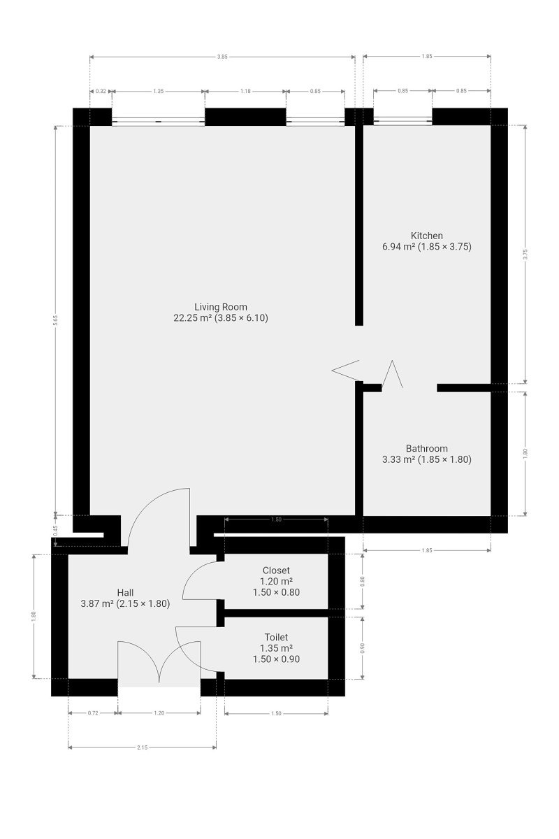 - Celková podlahová plocha: 36 m²