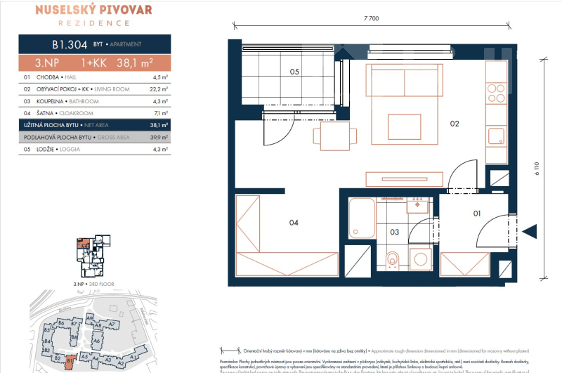 | Dispozice/podlahová plocha: | 1+kk/46 m² |