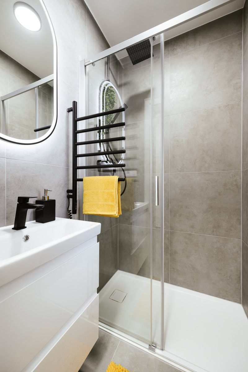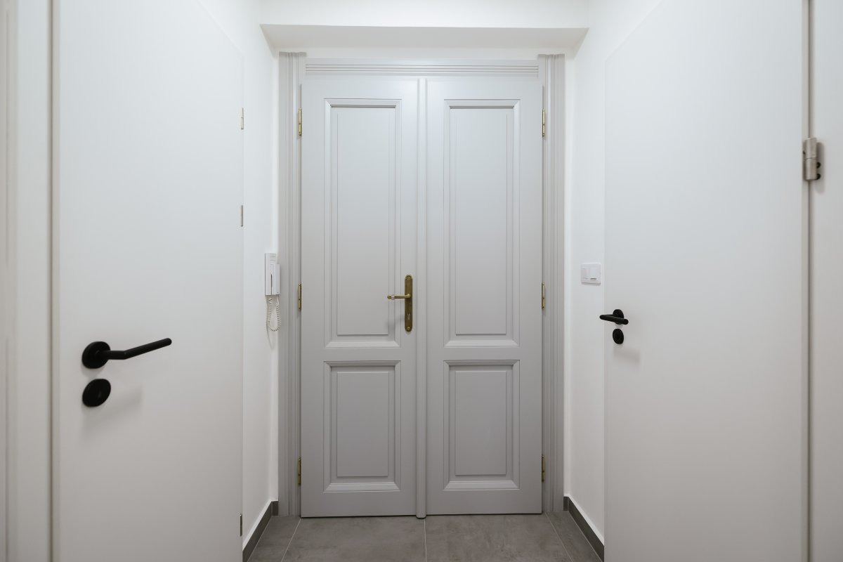 Byt se skládá se vstupní chodby, samostatné toalety s umyvadlem, koupelny se sprchovým koutem a umyvadlem.