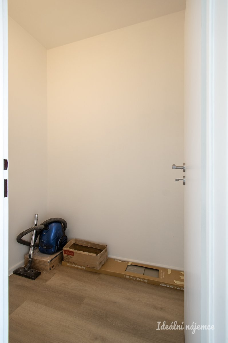 Byt se nabízí nevybavený. Kuchyně disponuje lednicí, troubou, sporákem a digestoří. Obývací část je dále nezařízena. V koupelně najdeme sprchový kout, umyvadlo, pračku a toaletu. Výhodou je také technická místnost k uskladnění věcí.
