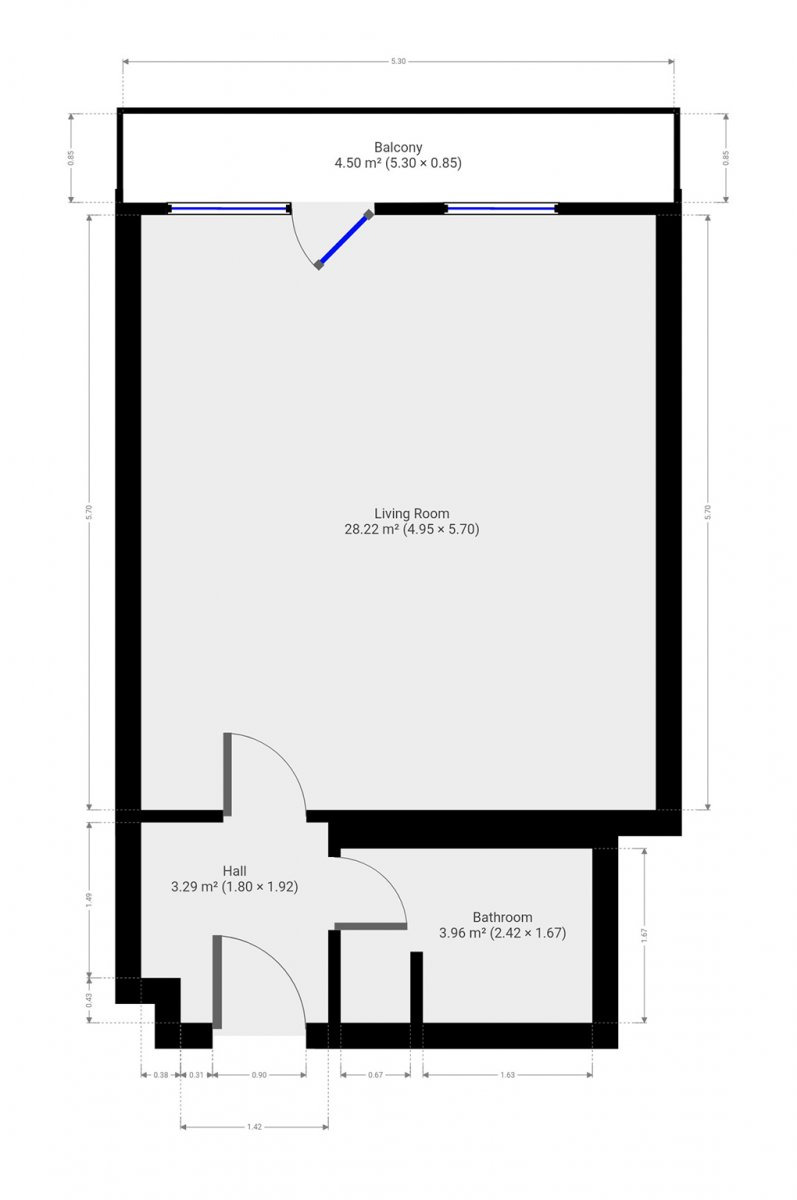 - Celková podlahová plocha: 38 m²