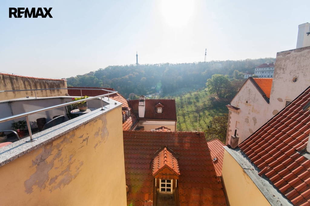 Nabízím k pronájmu prostorný mezonetový byt 2+kk o velikosti 110m² v historické budově tzv. domu U Hodinářů nabízející jedinečné výhledy na Pražský hrad, Loretu a z koupelny na Petřínskou rozhlednu. Byt i dům byly citlivě zrenovovány se zachováním mnoha původních architektonických prvků.