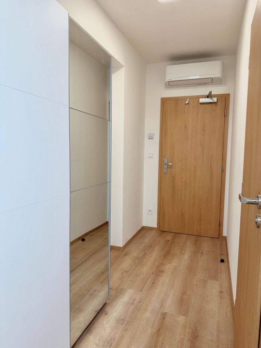 Byt o výměře 19 m se nachází v 6. nadzemním podlaží domu s výtahem. Díky střešním oknům je interiér velmi světlý a nabízí krásný výhled na Prahu. V celém bytě je instalováno podlahové topení a klimatizace, což zajišťuje komfortní bydlení po celý rok.