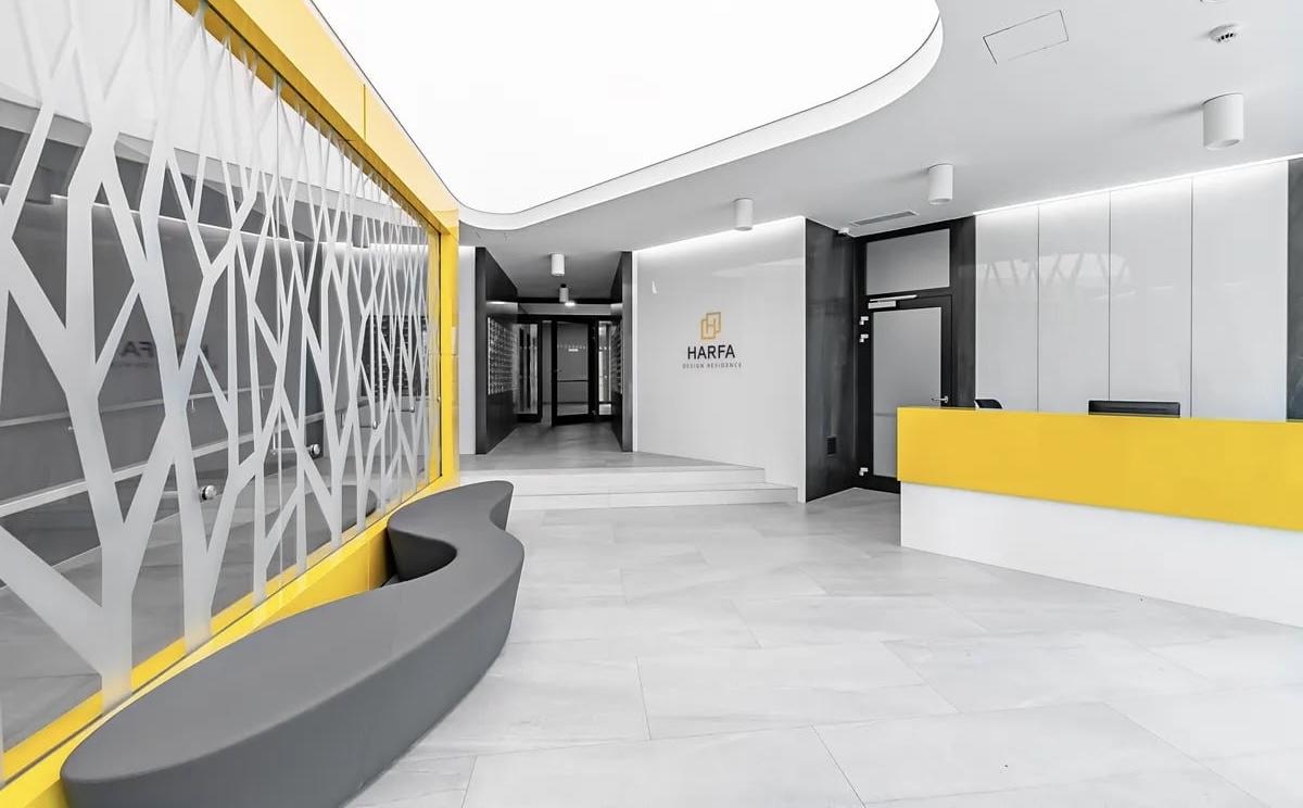Nabízíme k dlouhodobému pronájmu moderní a designový byt 1+kk o velikosti 33 m and sup2;, nacházející se v 6. patře prestižní rezidence Harfa Design Residence, ul. Kurta Konráda, Praha 9 Libeň.