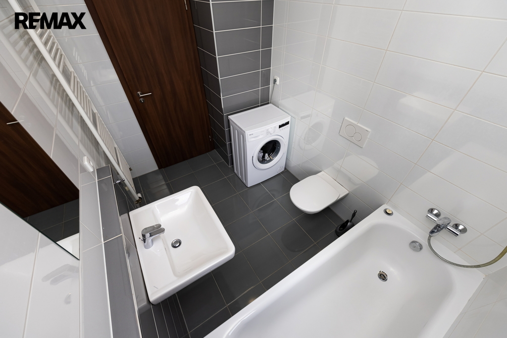 Byt se pronajímá zařízený, jak je patrné z fotografií – k dispozici je kuchyňská linka se spotřebiči (lednice s mrazákem, varná deska, trouba, pračka), dvoulůžková postel a skříně.