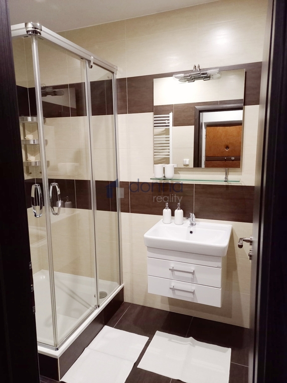 Byt je kompletně zařízený nábytkem a spotřebiči. V koupelně je sprchový kout, toaleta samostatná.