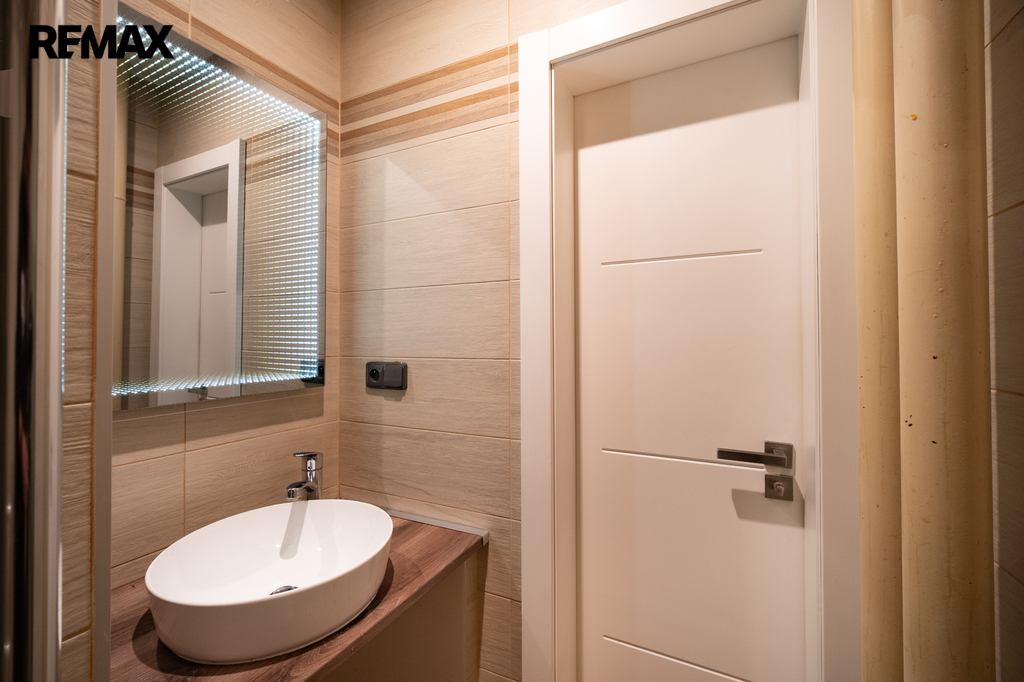 - koupelna se sprchovým koutem, umyvadlem, topným tělesem a oddělenou toaletou