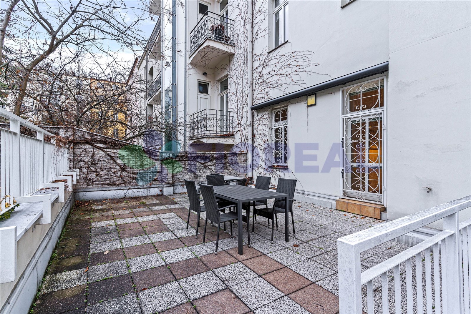 Byt je situován na dvě světové strany a díky orientaci a umístění se tak jeden pokoj nachází ve 2. nadzemním podlaží (směřuje do ulice, cca 3 m nad úrovní chodníku), zatímco druhý pokoj a kuchyně jsou v přízemí situovány směrem do tichého vnitrobloku. Z kuchyně je přímý vstup na terasu, jejíž užívání je výhradně k tomuto bytu a je vybavena stolem s židlemi a výsuvnou markýzou. Dalším bonusem je možnost využívat společnou zahradu s posezením a upraveným trávníkem.