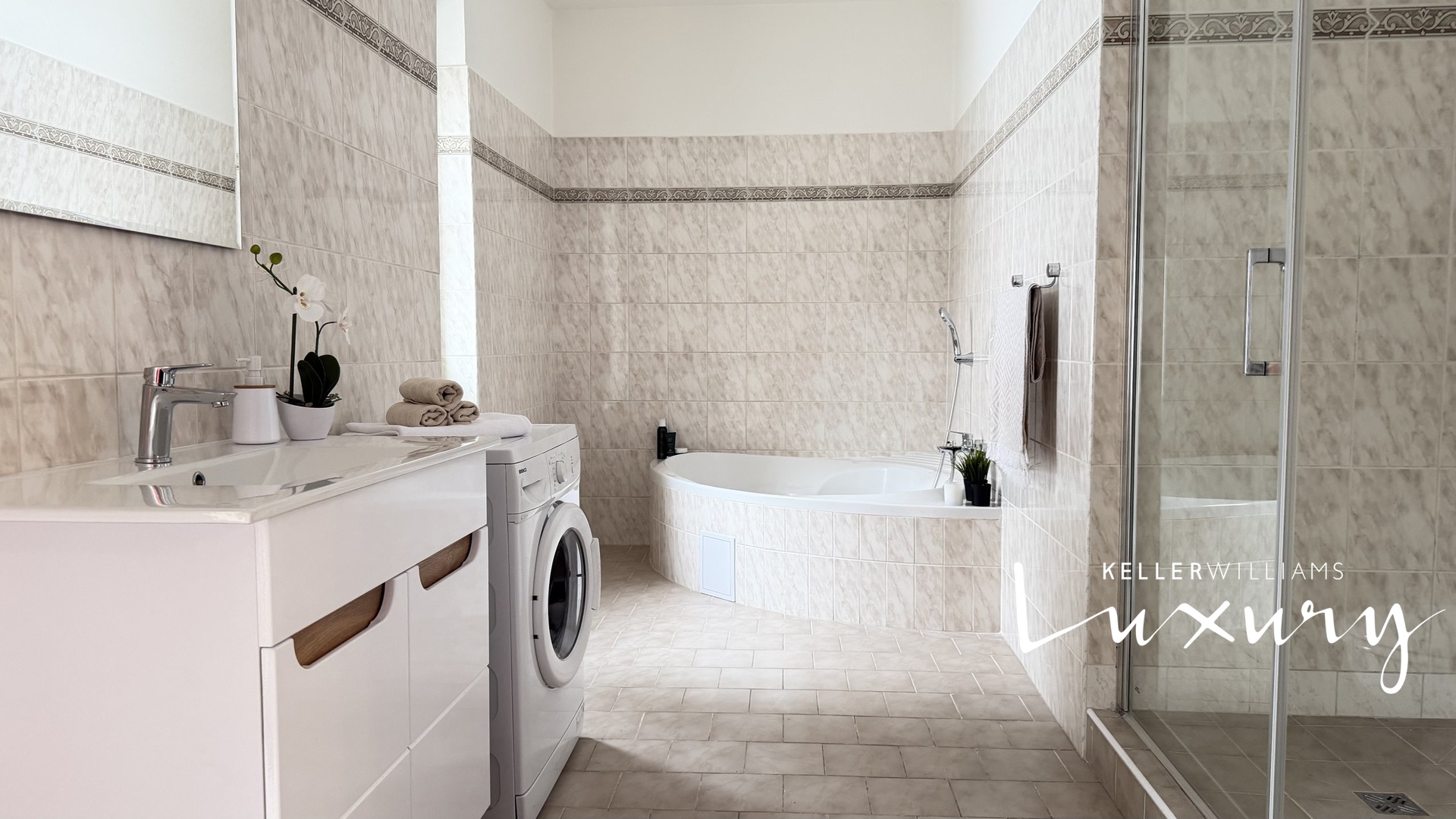Koupelna disponuje rohovou vanou, sprchovým koutem a WC, navíc je zde malý balkon. Ložnice je zařízena manželskou postelí s úložným prostorem a velkou šatní skříní. Dominantou obývacího pokoje je krb, který vytváří výjimečně útulnou atmosféru a podtrhuje charakter bytu.