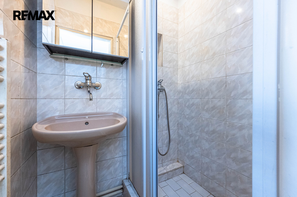 Koupelna se sprchovým koutem.