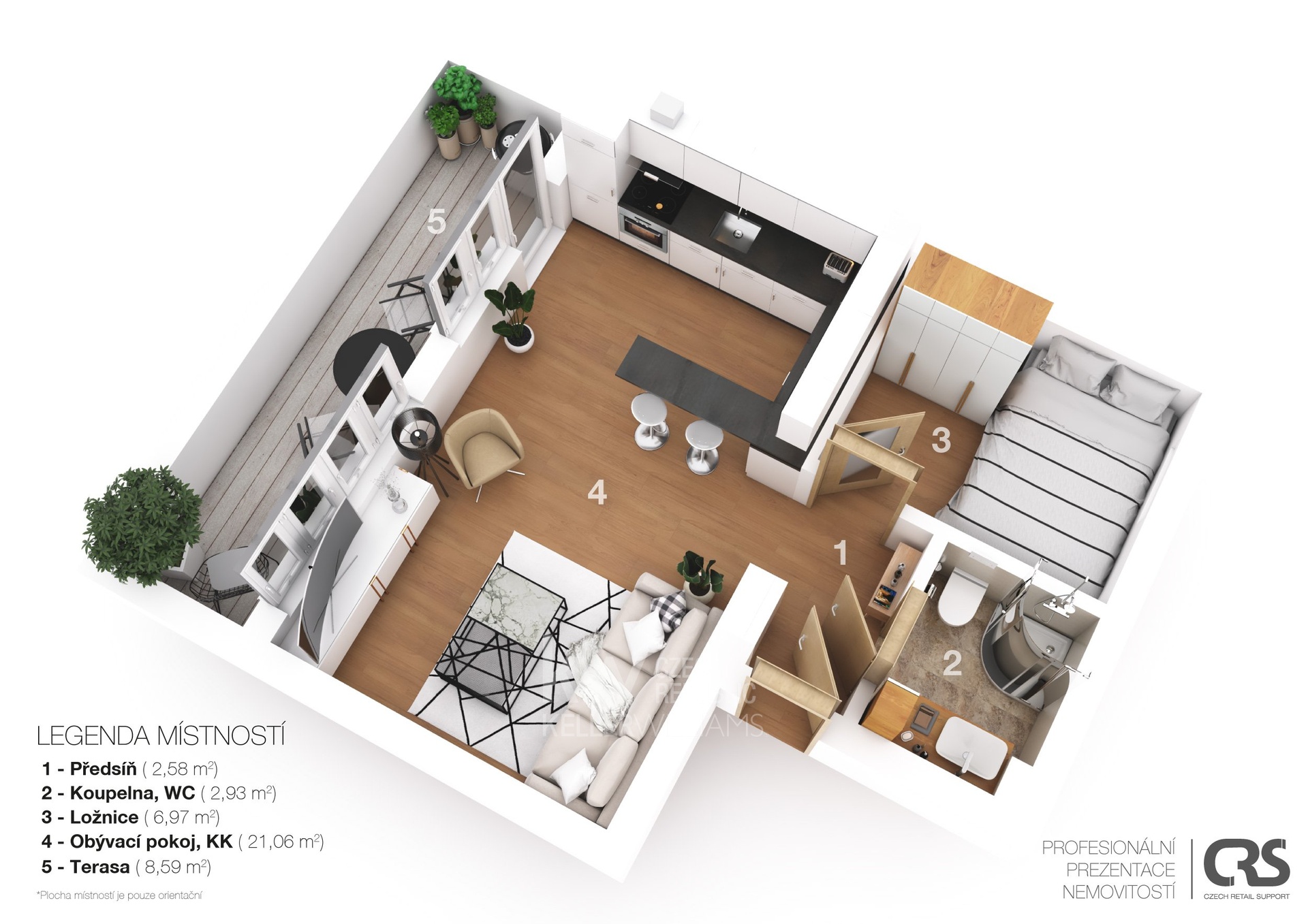 - Dispozice bytu: 2+kk